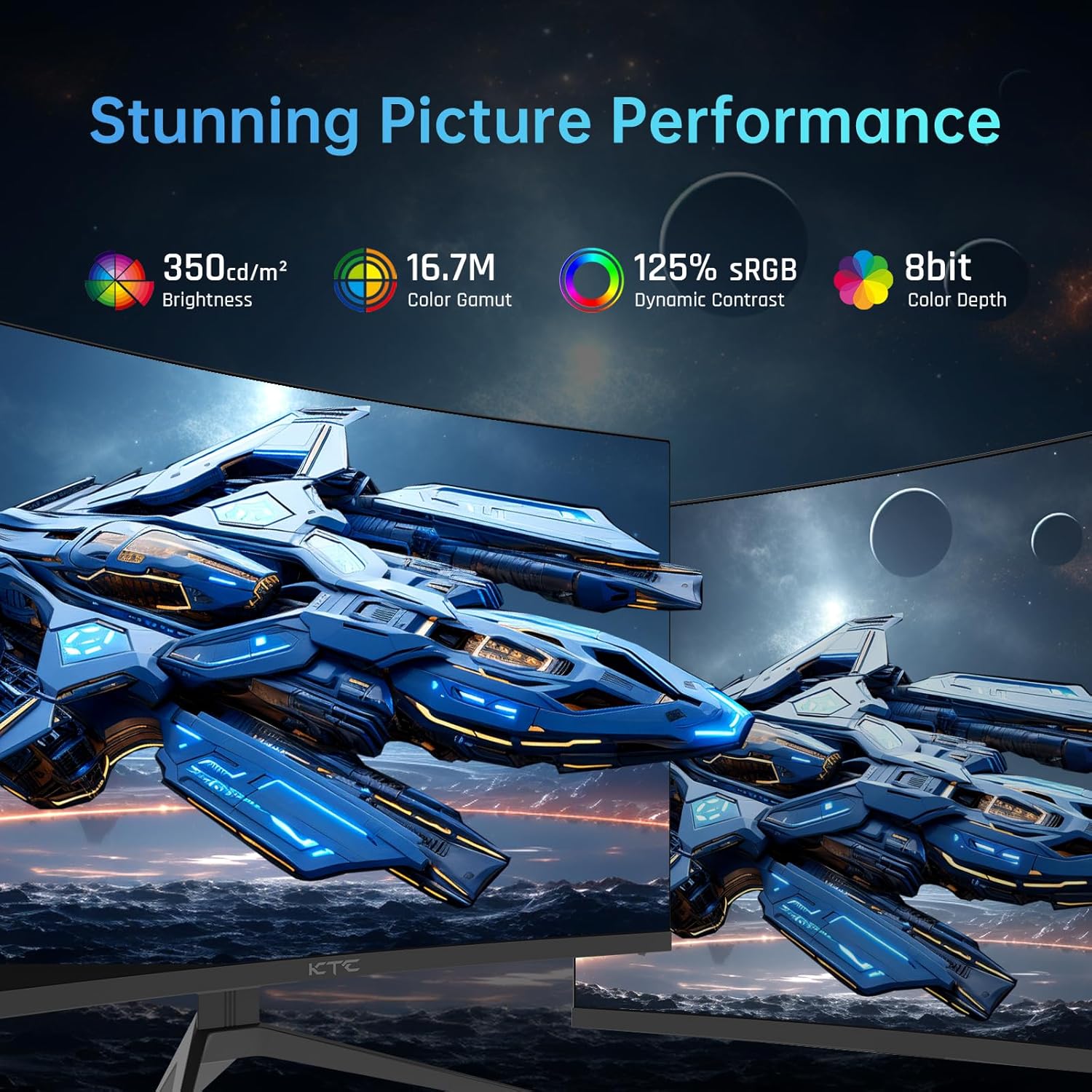 - Vivid Visuals for Enhanced Viewing:The KTC 32" curved gaming monitor Boasting a FHD(1920x1080P)resolution and THE 240hz monitor displays 125% SRGB color gamut and 16.7 million display colors. It also features a remarkable contrast ratio of 3500:1, providing exceptionally clear and distinct images