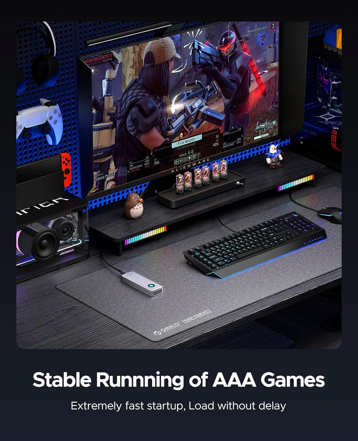 - 3700MB/s Lightning Speed: This external solid state drive features a 40Gbps transfer bandwidth and a maximum speed of 3700MB/s, meeting the high-speed data transfer and large storage needs of music creators and gamers.