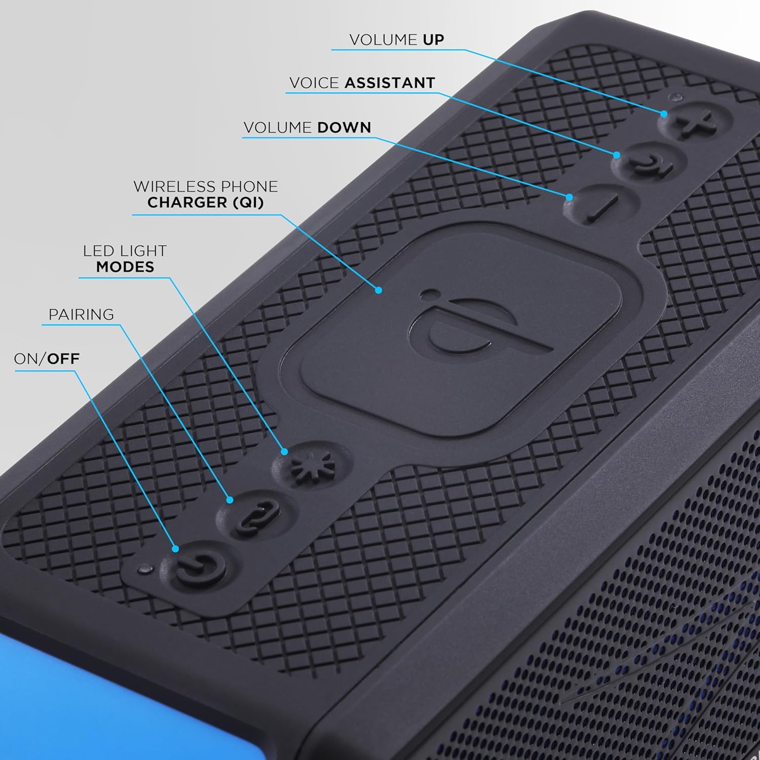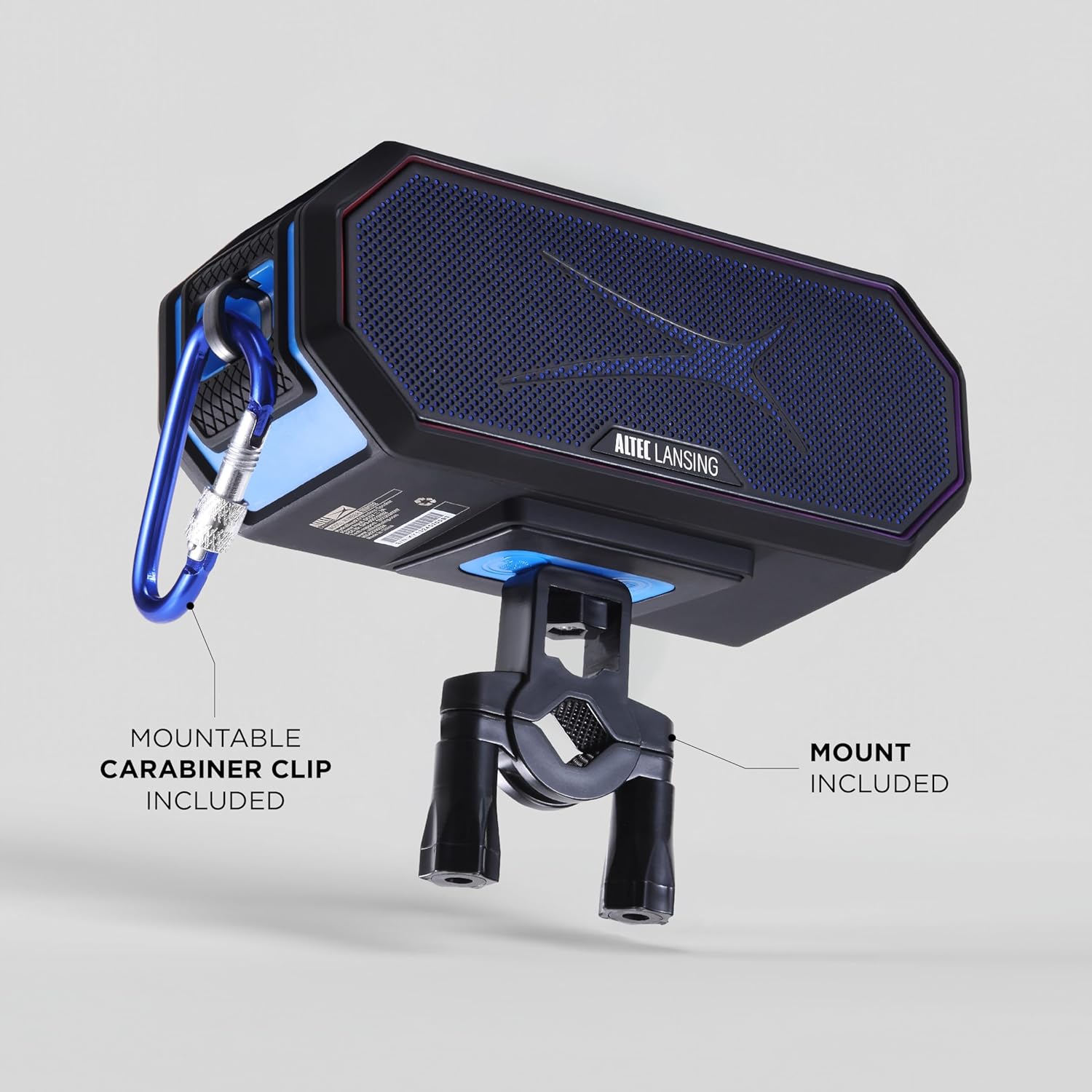 Altec Lansing Loud Portable Speakers Bluetooth Wireless Waterproof - MultiColor LED, 20 Hour Playtime, Mount Included | HydraBLAST 2.0 Magnetic Bluetooth Speaker for Travel, Home and Outdoor Adventure