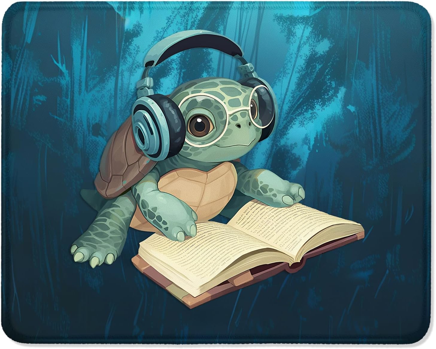 ITNRSIIET Mouse Pad with Stitched Edge Premium Textured Smooth Precise Operation Waterproof Washable Non-Slip Rubber Base Desktop Protection Mat, 10.2×8.3×0.12 inches, Pretty Turtles