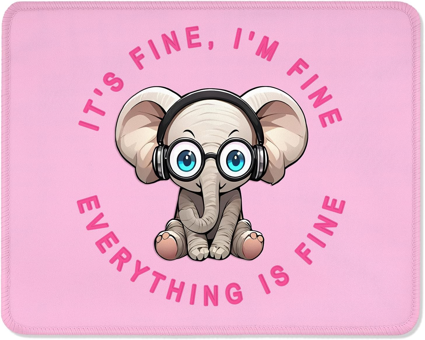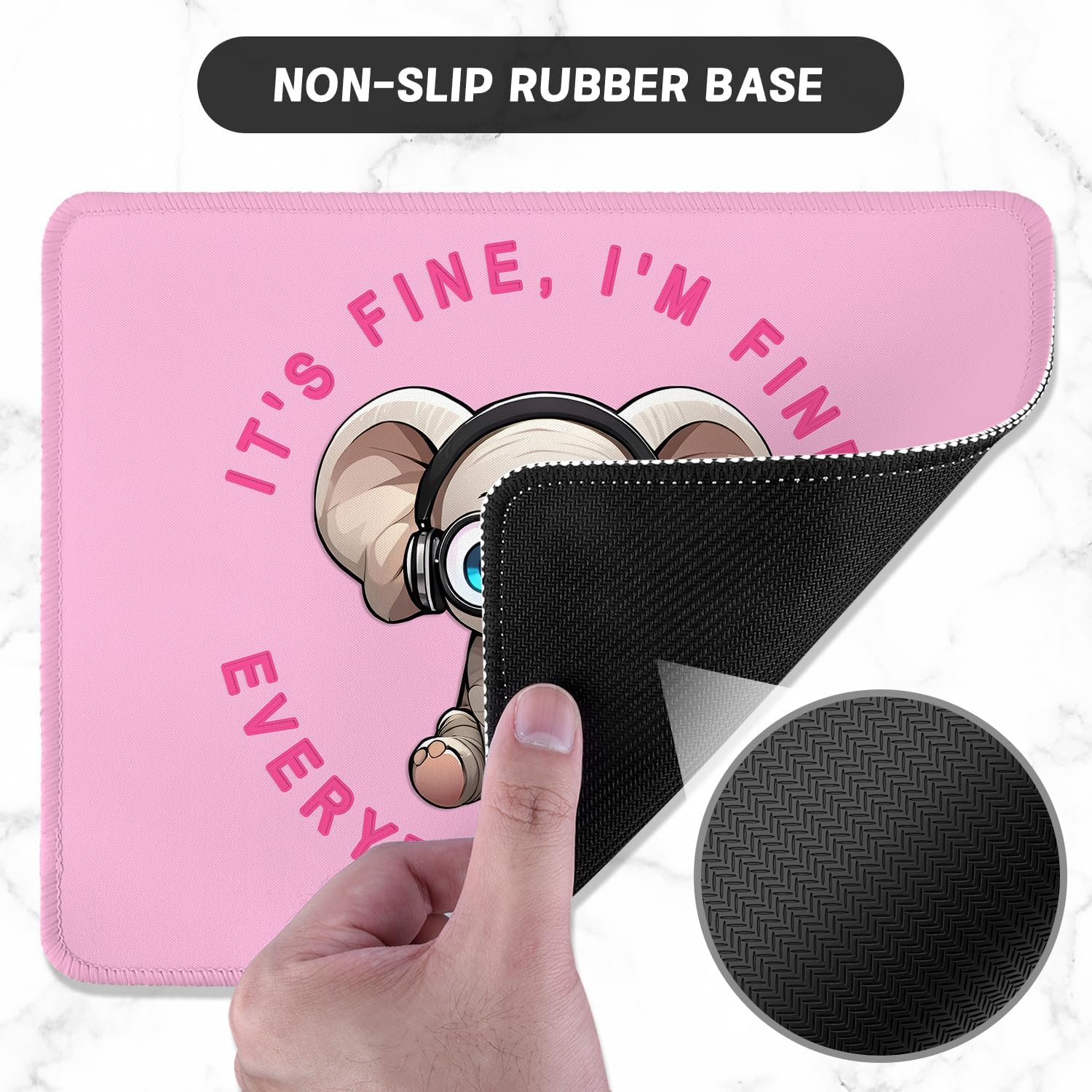 ITNRSIIET Mouse Pad with Stitched Edge Premium Textured Smooth Precise Operation Waterproof Washable Non-Slip Rubber Base Desktop Protection Mat, 10.2×8.3×0.12 inches, Pink Pretty Elephant