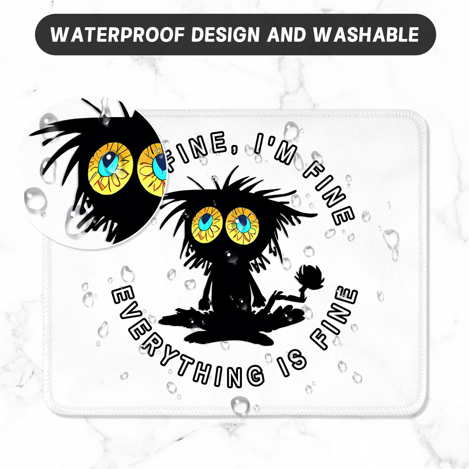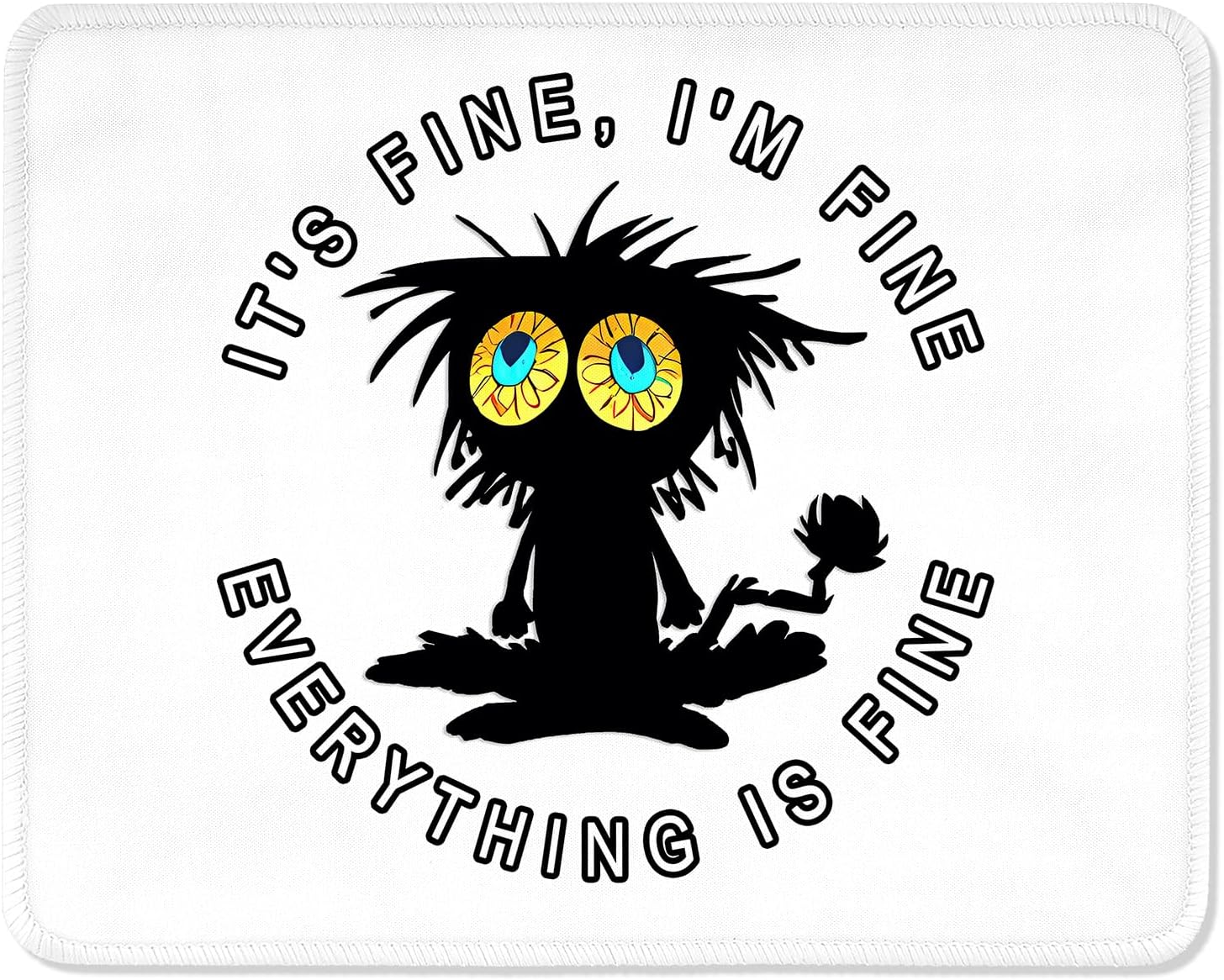 ITNRSIIET Mouse Pad with Stitched Edge Premium Textured Smooth Precise Operation Waterproof Washable Non-Slip Rubber Base Desktop Protection Mat, 10.2×8.3×0.12 inches, Funny Black Cat