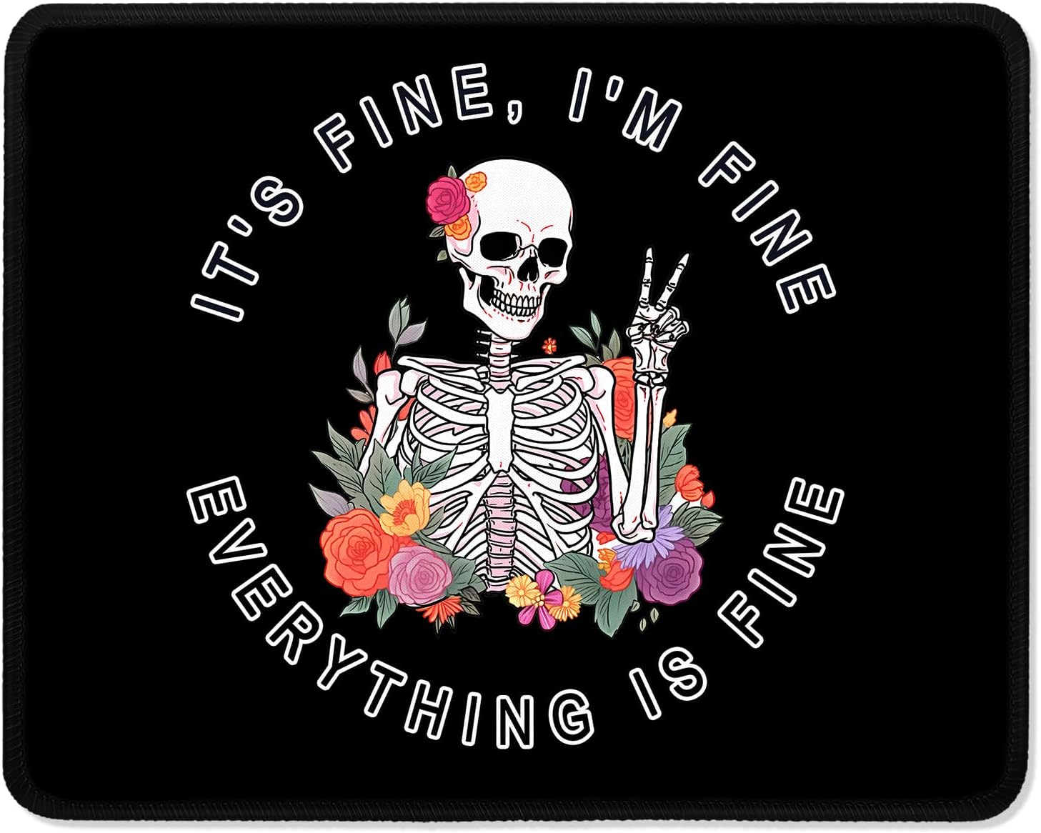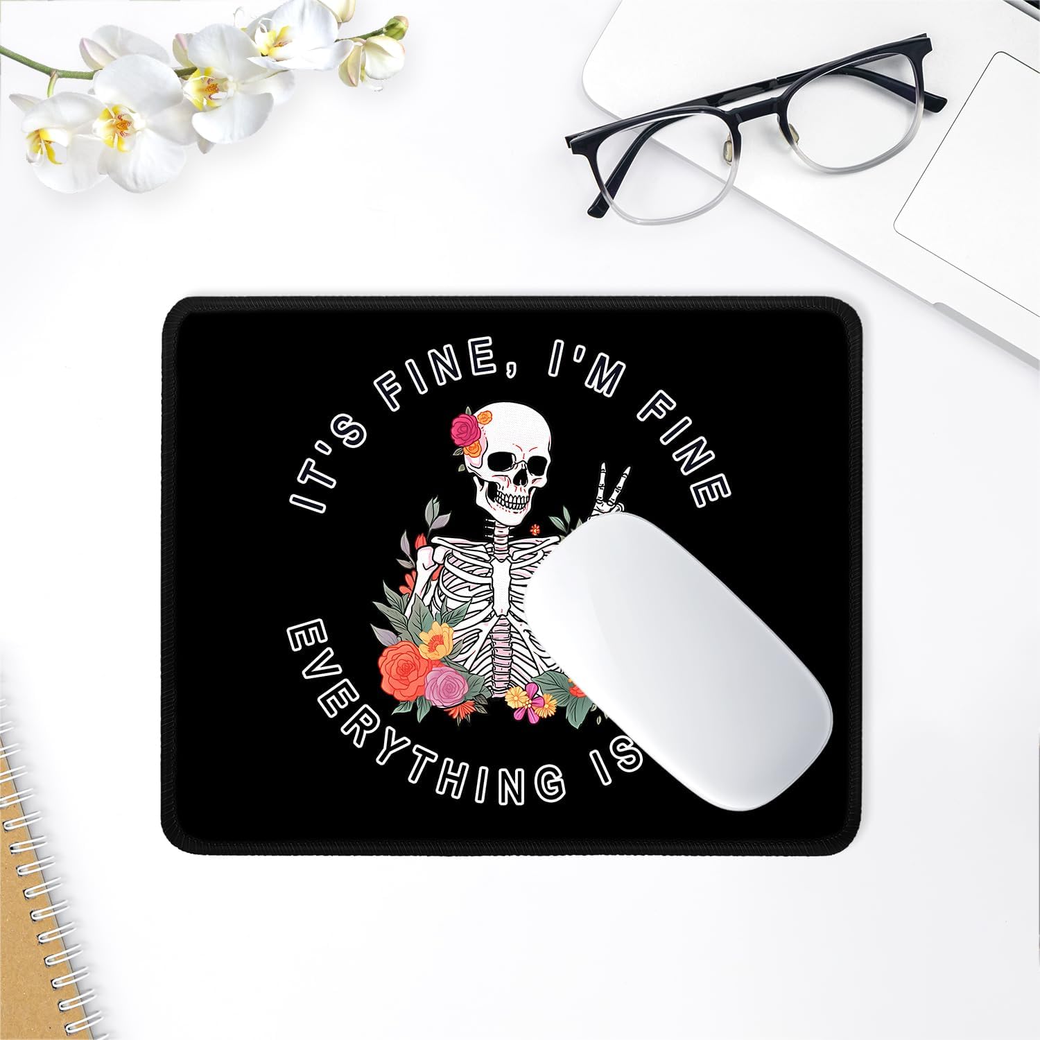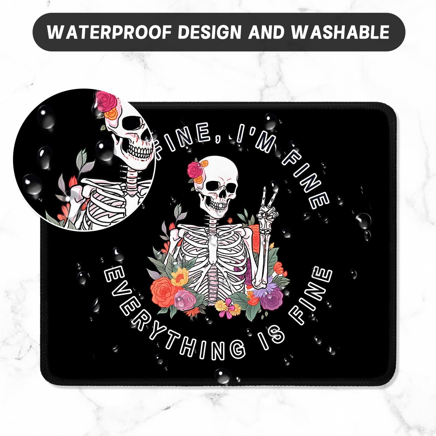 ITNRSIIET Mouse Pad with Stitched Edge Premium Textured Smooth Precise Operation Waterproof Washable Non-Slip Rubber Base Desktop Protection Mat, 10.2×8.3×0.12 inches, Flower Skull
