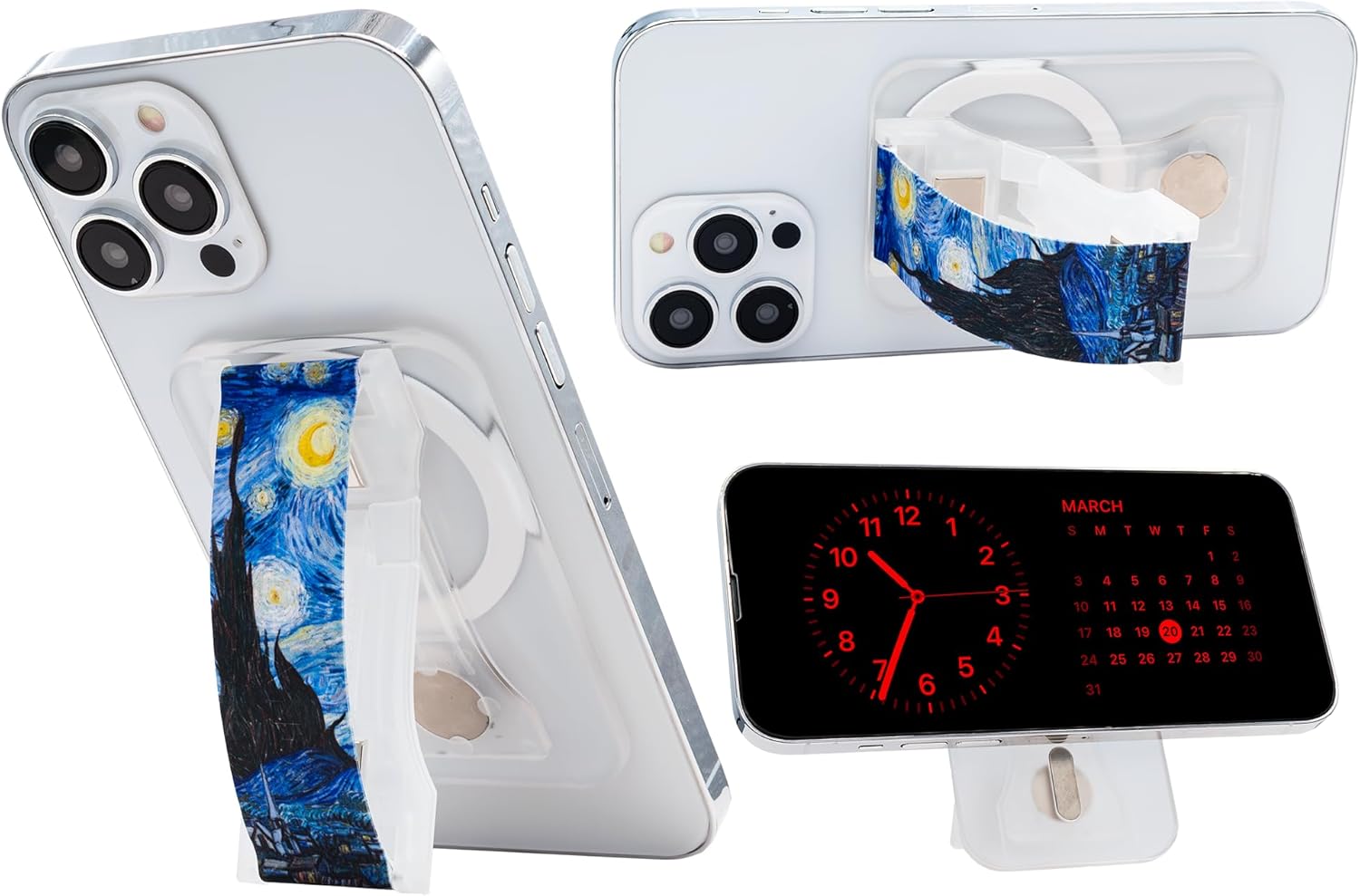 LoveHandle PRO MagSafe Compatible Magnetic Phone Grip w/Kickstand - Mount, Strap and Stand for Smartphone and Tablet - MagSafe Ring Included - Fits All Devices - The Starry Night