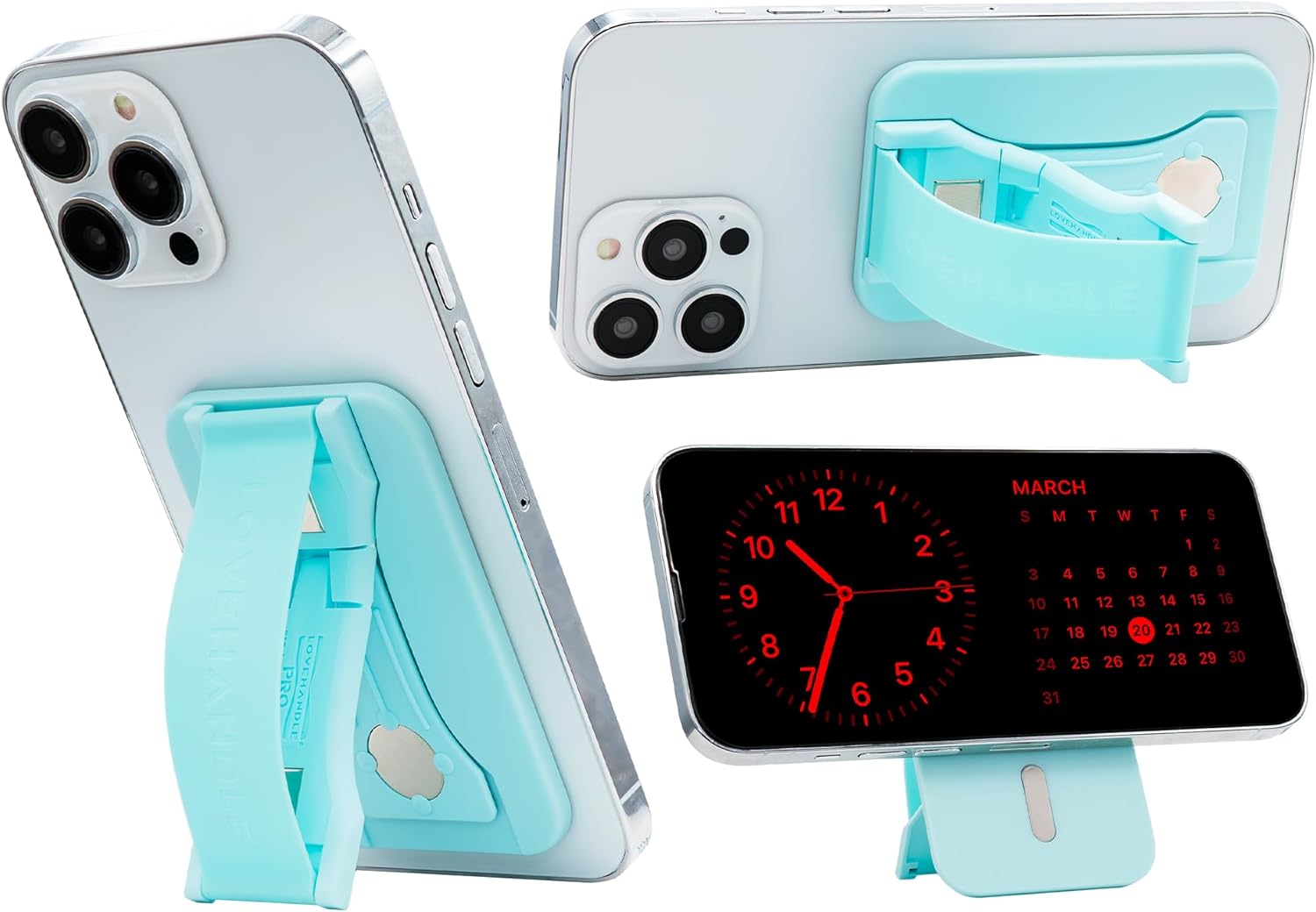 LoveHandle PRO MagSafe Compatible Magnetic Phone Grip w/Kickstand - Mount, Strap and Stand for Smartphone and Tablet - MagSafe Ring Included - Fits All Devices - Solid Limpet