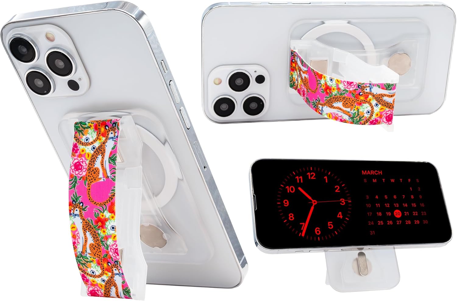LoveHandle PRO MagSafe Compatible Magnetic Phone Grip w/Kickstand - Mount, Strap and Stand for Smartphone and Tablet - MagSafe Ring Included - Fits All Devices - Grand Millennial