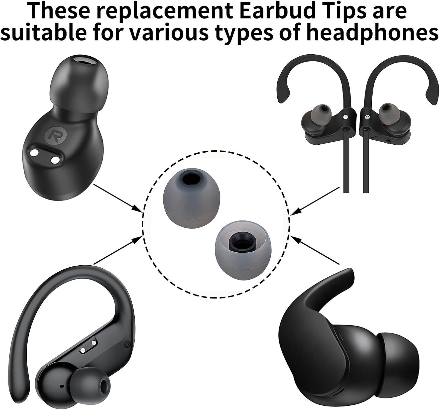 - These Replacement Earbud Tips compatible with all headphones with connection port diameter of 3.8mm-5.18mm.