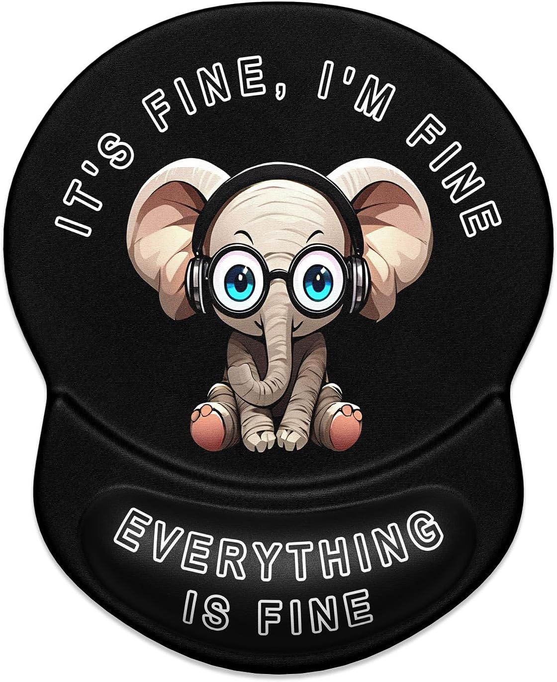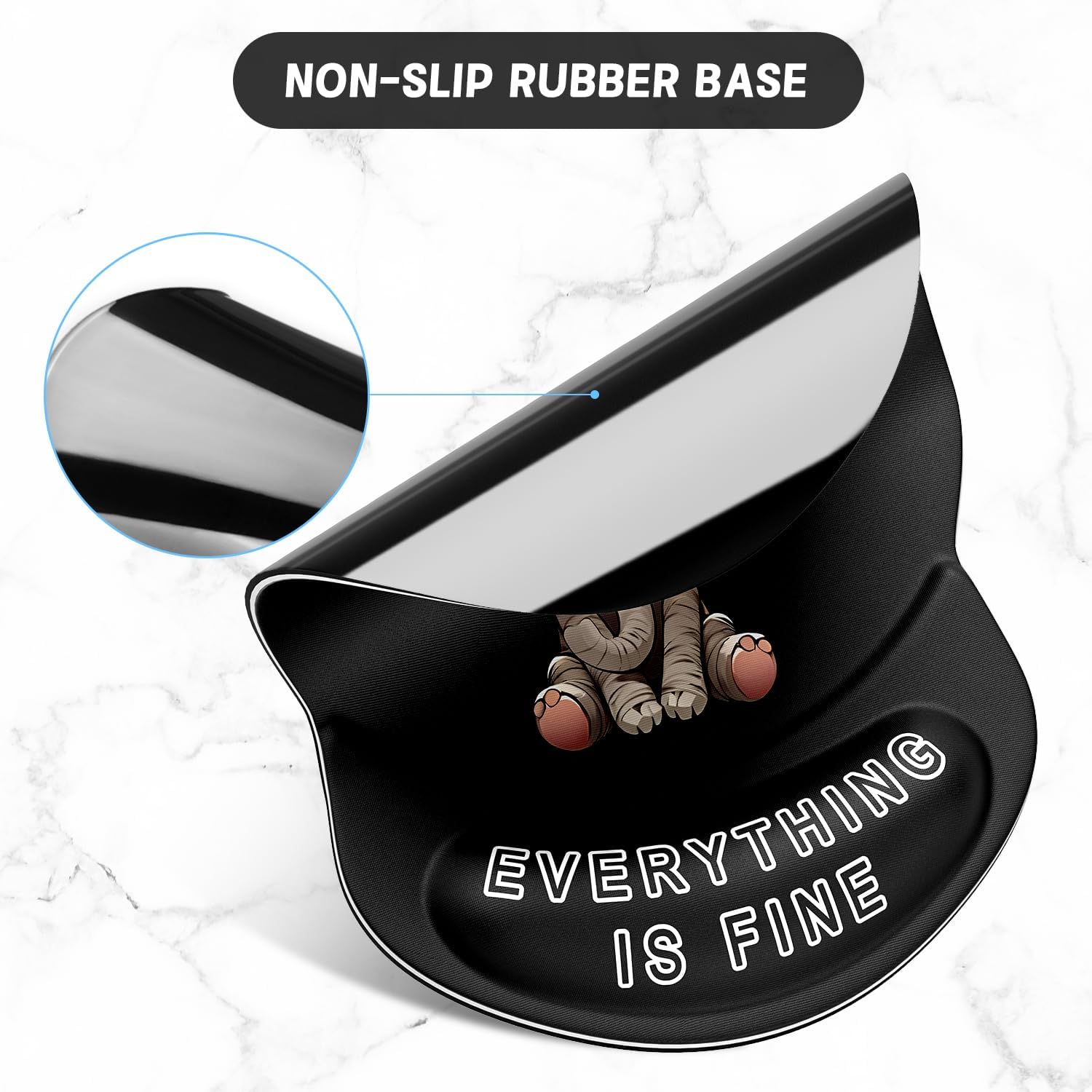 ITNRSIIET Ergonomic Mouse Pad with Gel Wrist Support Small Wrist Rest Smooth Surface Non-Slip PU Base Comfortable Office Supplies Pain Relief, 8.7 x 7.2 inches, Pretty Fine Elephant