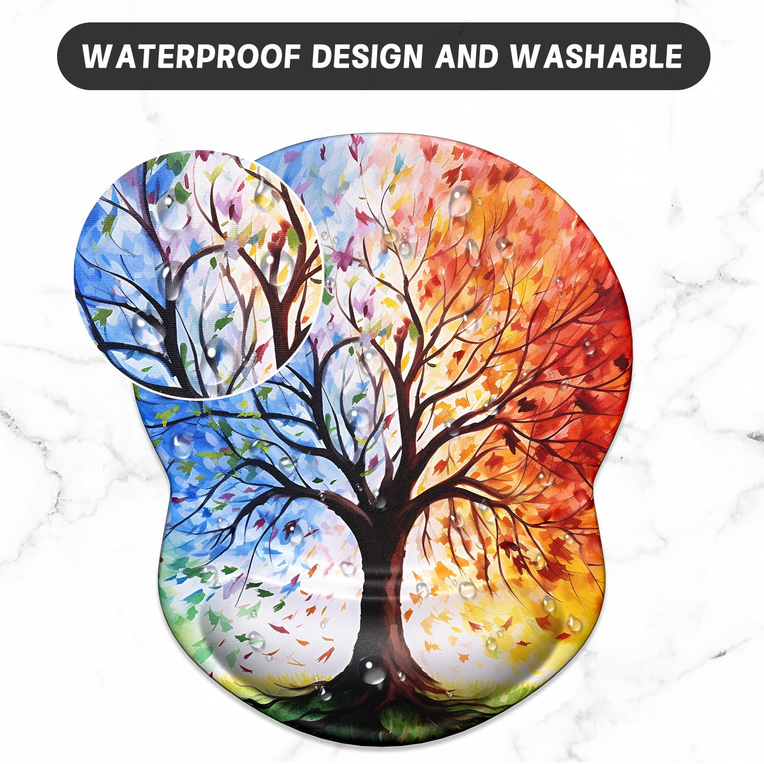 ITNRSIIET Ergonomic Mouse Pad with Gel Wrist Support Small Wrist Rest Smooth Surface Non-Slip PU Base Comfortable Office Supplies Pain Relief, 8.7 x 7.2 inches, The Tree of Life