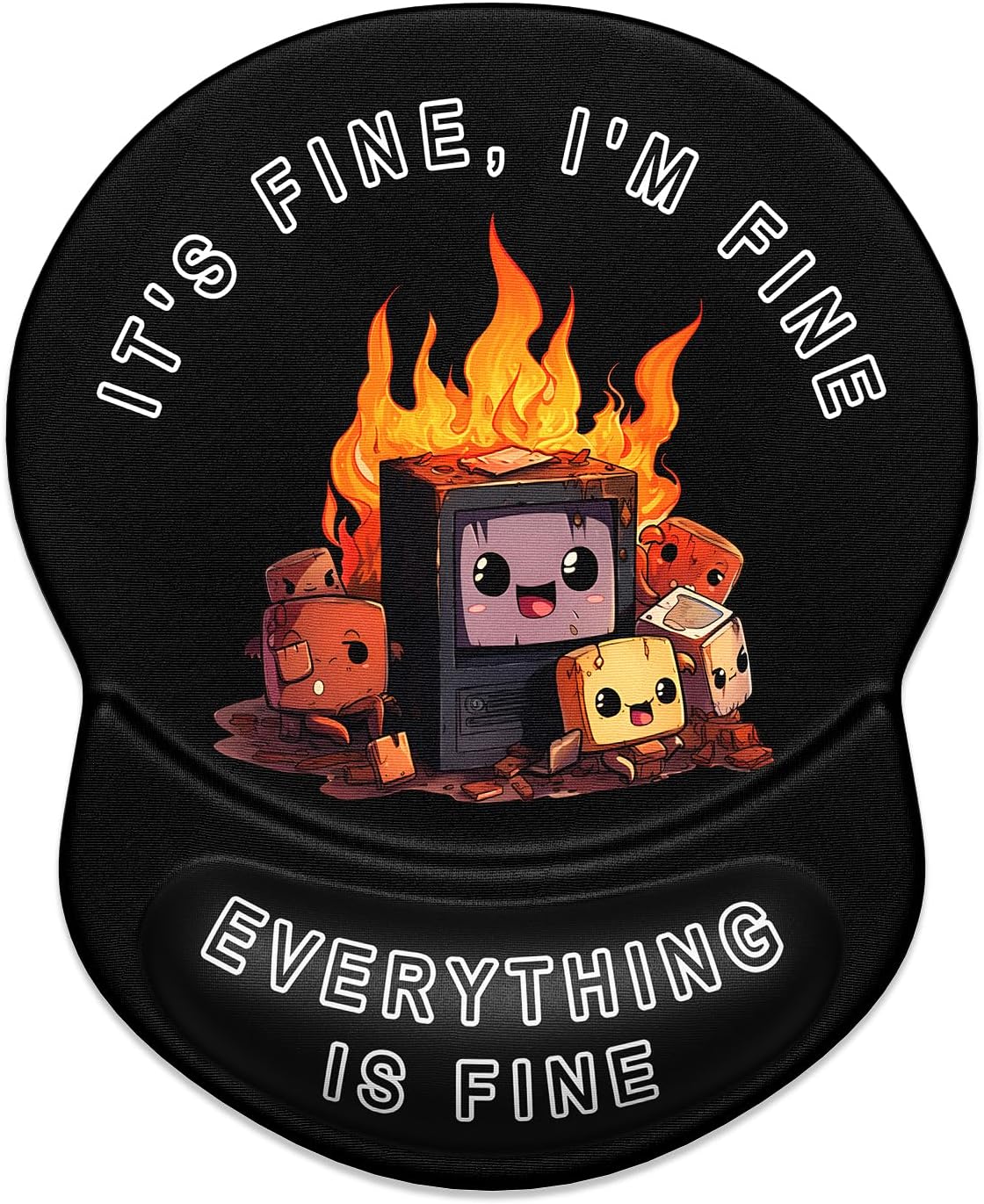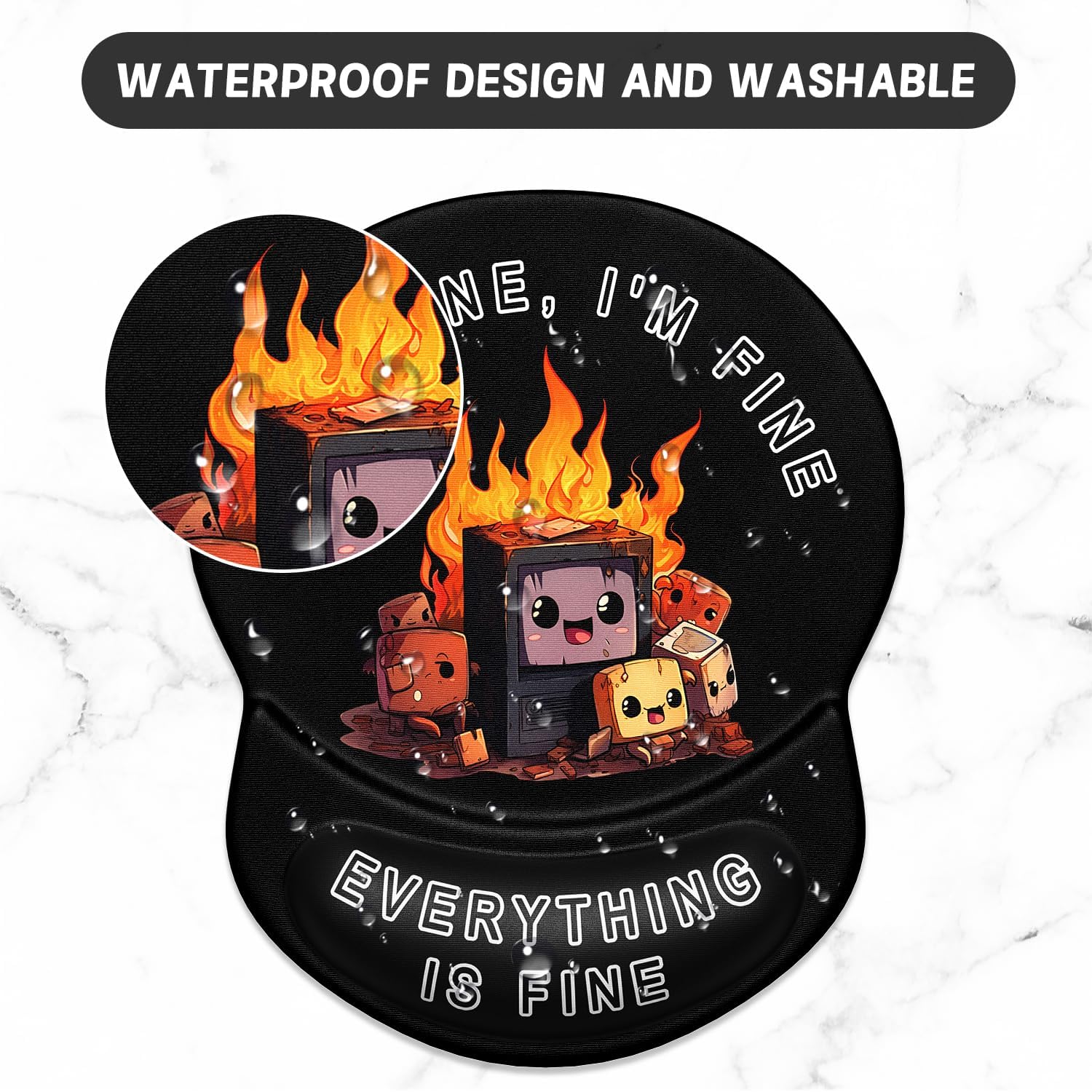 ITNRSIIET Ergonomic Mouse Pad with Gel Wrist Support Small Wrist Rest Smooth Surface Non-Slip PU Base Comfortable Office Supplies Pain Relief, 8.7 x 7.2 inches, Funny Burning Box
