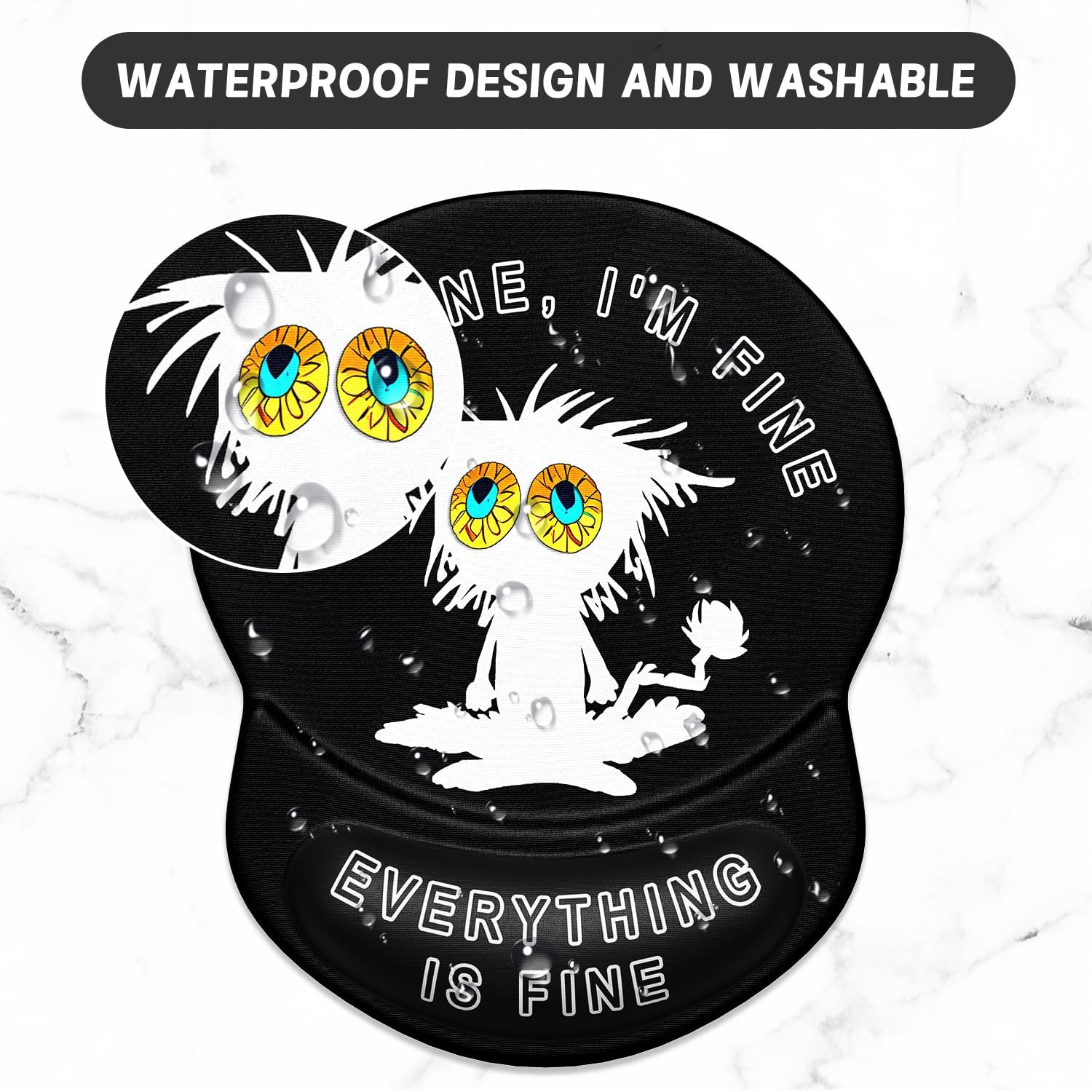 ITNRSIIET Ergonomic Mouse Pad with Gel Wrist Support Small Wrist Rest Smooth Surface Non-Slip PU Base Comfortable Office Supplies Pain Relief, 8.7 x 7.2 inches, Funny Cat
