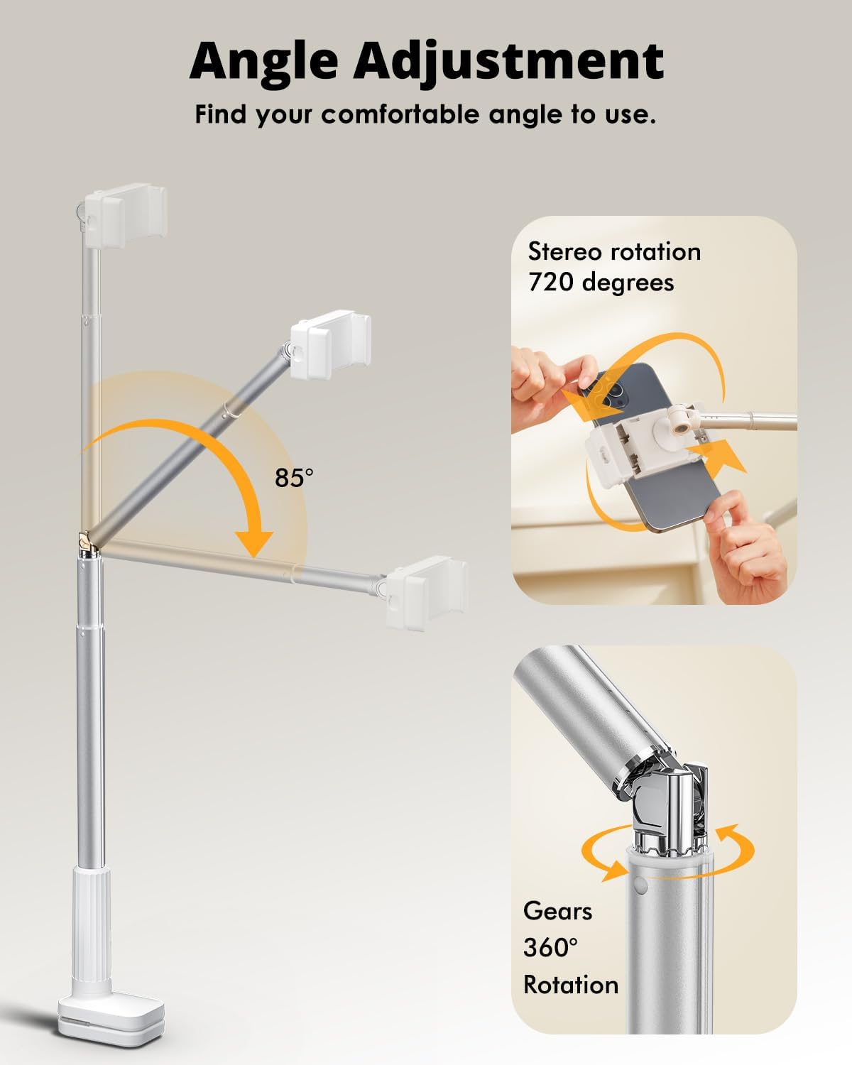 - 【Flexible and Durable】The flexible telescopic arm is made of high-quality aluminum and magnesium alloy, providing strong and stable support. The arm can be adjusted within 360 degrees to meet different viewing angles, helping to prevent neck pain and fatigue