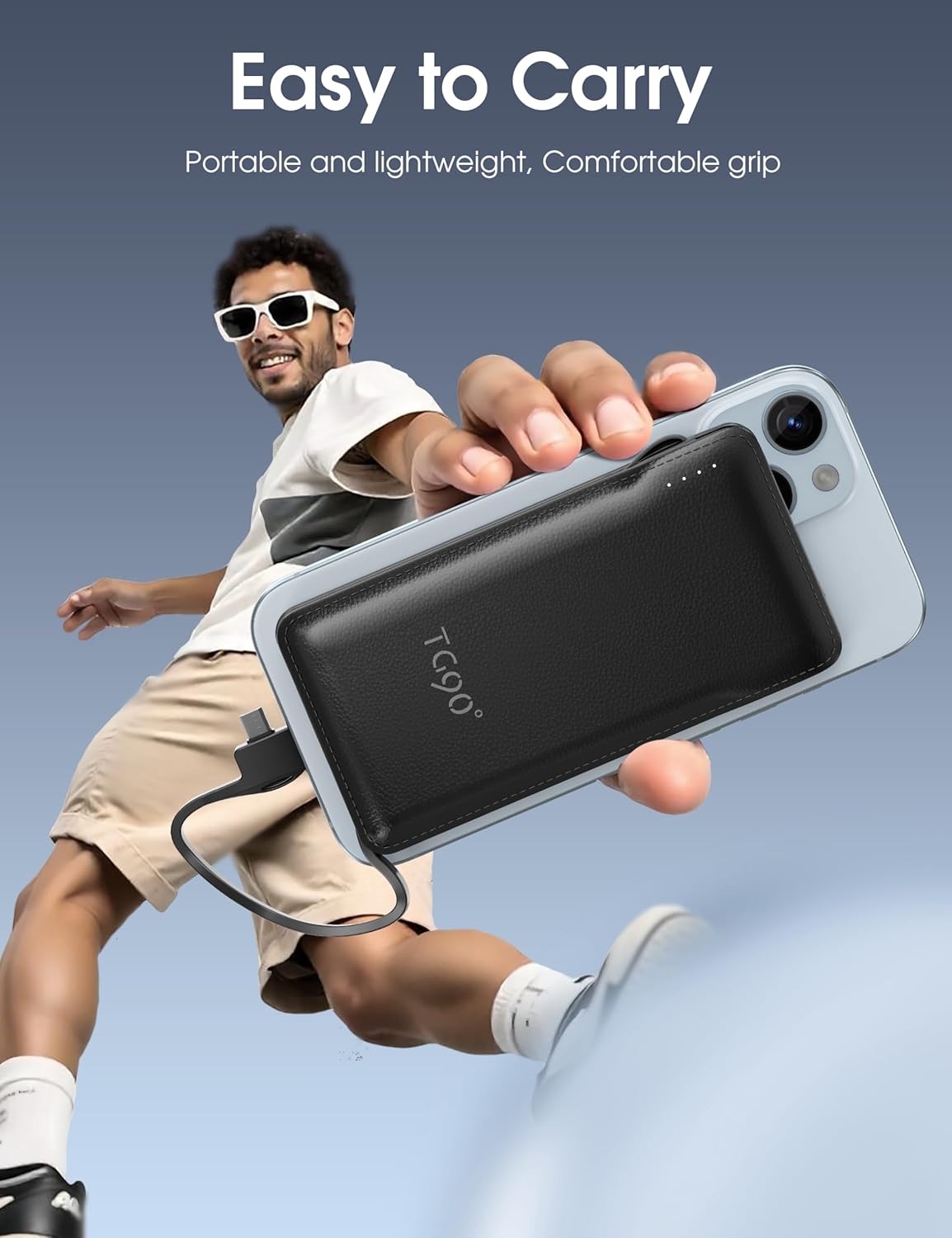 TG90° 2 Pack 10000mAh Power Bank Built-in Foldable AC Wall Plug and Cables,Pocket Size USB C Portable Charger,Ultra Slim Battery Pack Compatible with iPhone Series and Android Devices