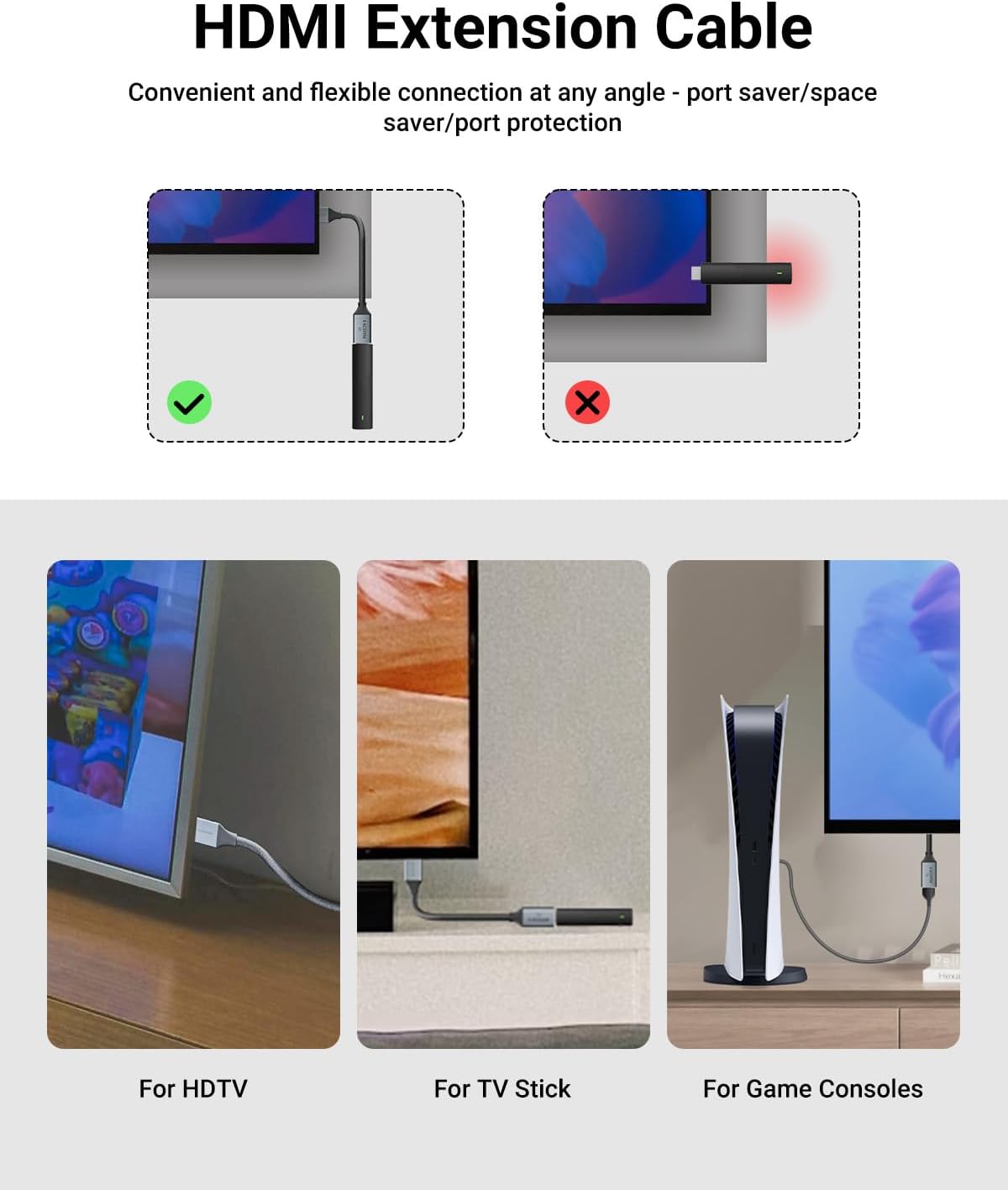 8K Short HDMI Extender Cable 0.6 FT Ideal for Tight Spaces, HDMI Extension Male to Female Adapter, Compatible with Roku TV Stick, HDTV, Game Console, Laptop (1 Pack, 0.6FT)