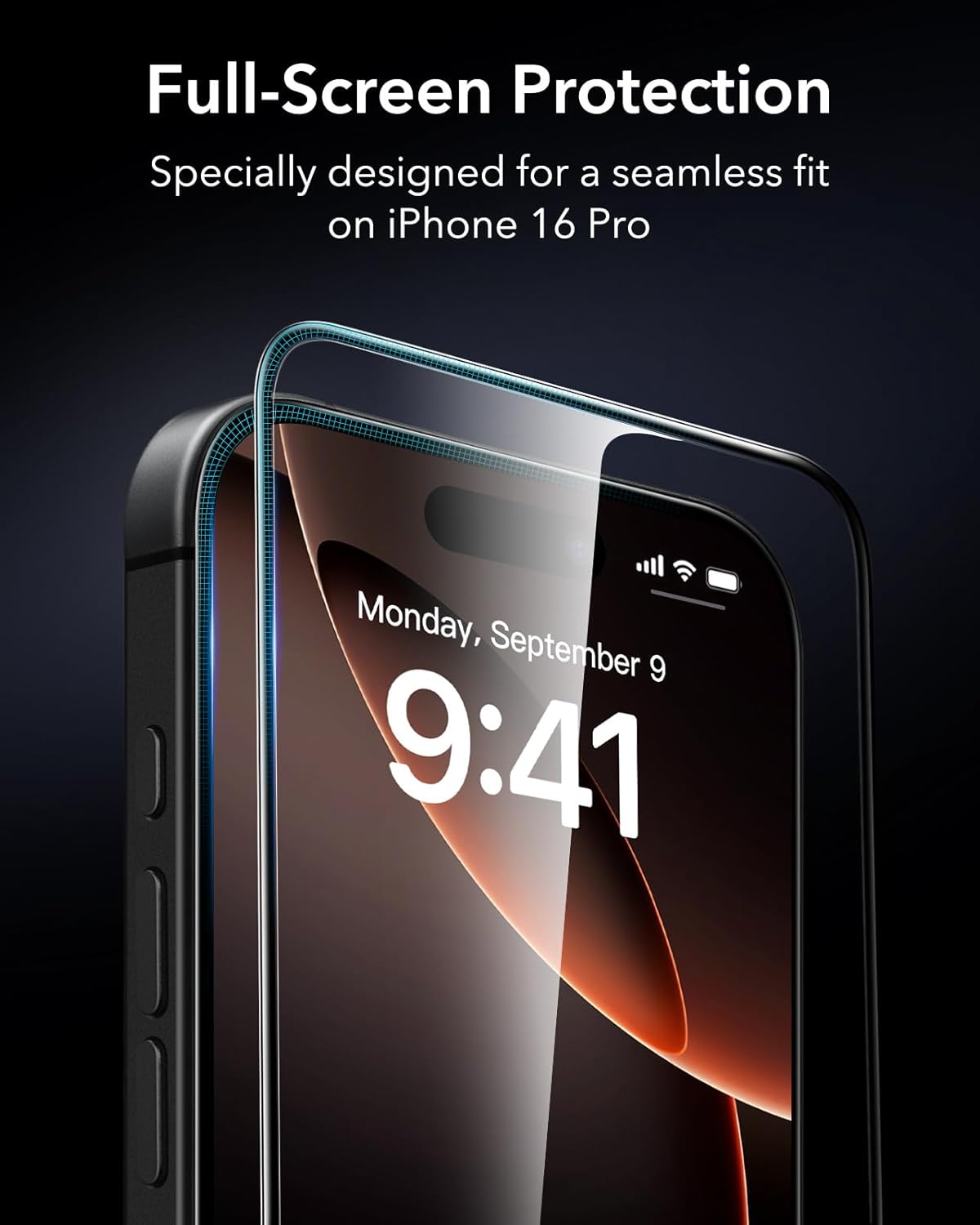 - In the Box: ESR Armorite screen protectors (3 pack, only for iPhone 16 Pro), UltraFit tray, cleaning kit, and manual