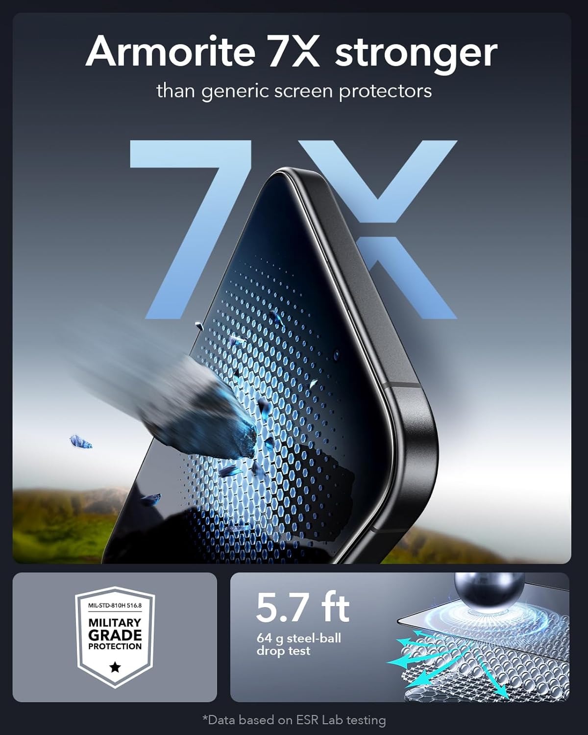 - Ultimate Protection: made from high-quality tempered Armorite glass to resist impacts of up to 110 lb, keeping your screen safe from drops, bumps, and scratches