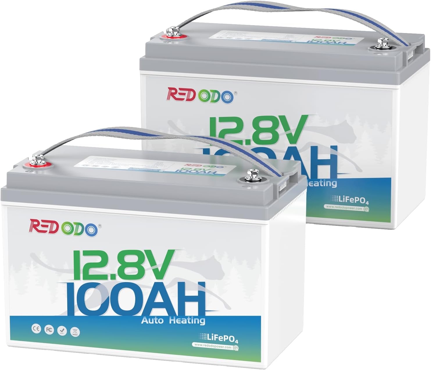 Redodo 12V 100Ah LiFePO4 Battery with Self Heating, Low Temperature Protection Group 31 Lithium Battery, Built in 100A BMS, 4000+ Deep Cycles, Perfect for RVs, Off-Grid in Cold Areas 2 Packs