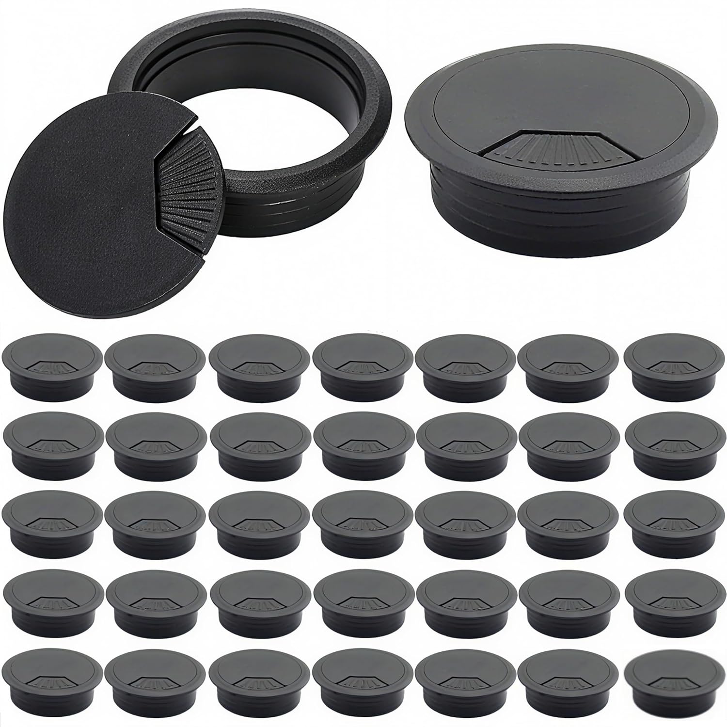 - Product Details: Each package contains 40 pack black desk cable wire grommets, enough for you to use. The overall size of the grommet is 2"D x 0.7"H, suitable for most tables.
