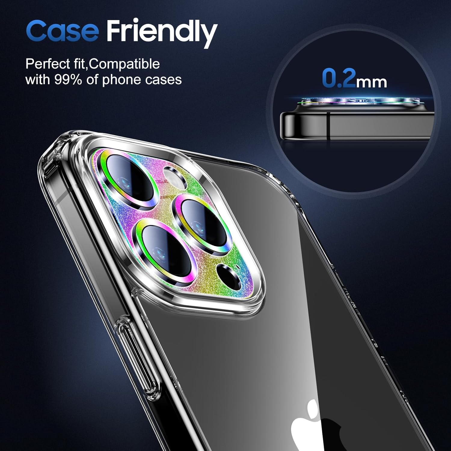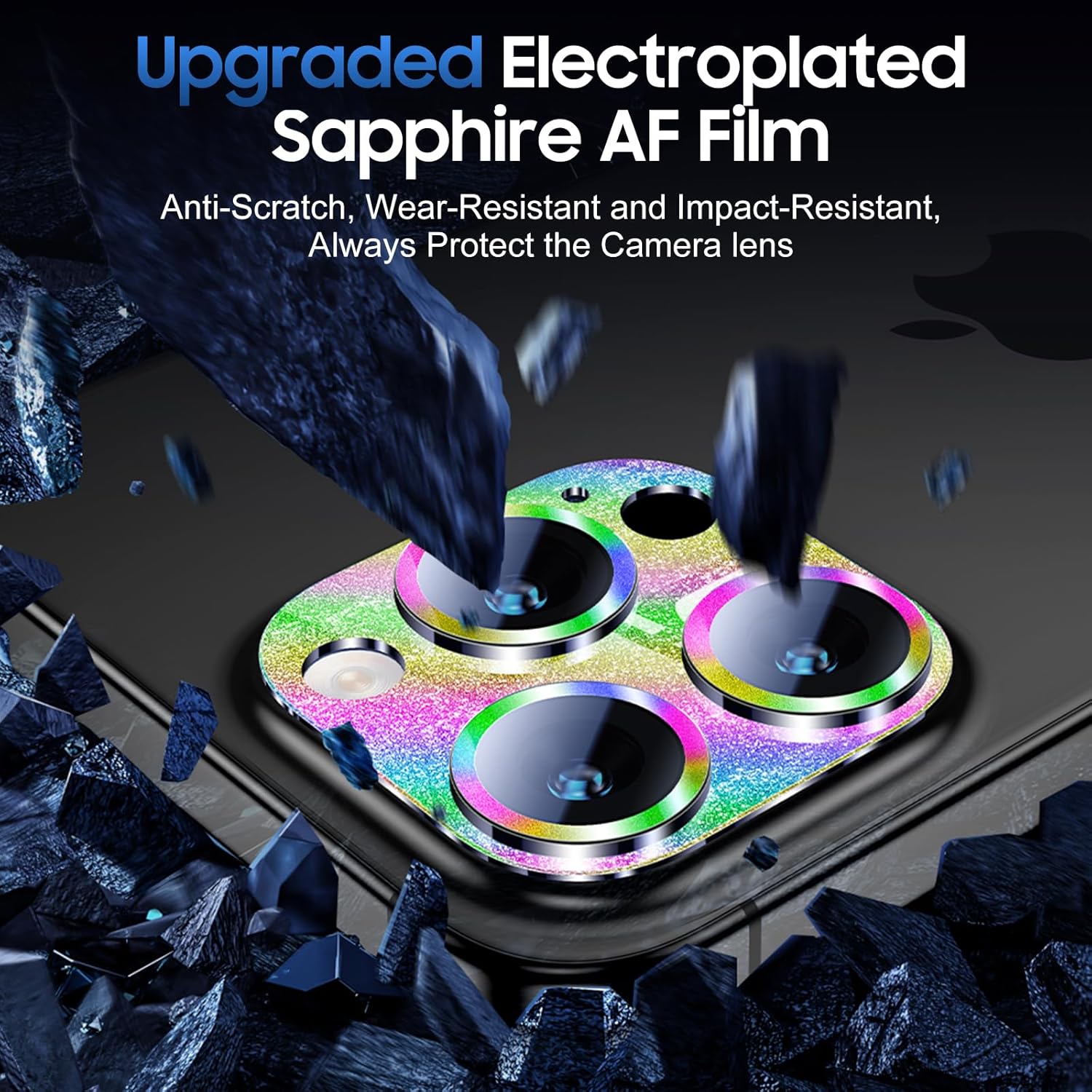 UniqueMe for 3 Pack iPhone 15 Pro/iPhone 15 Pro Max Camera Lens Protector, [Drop Protection] [Case Friendly] Camera Cover Screen [Update New Version] - Intergrated Glitter Colorful