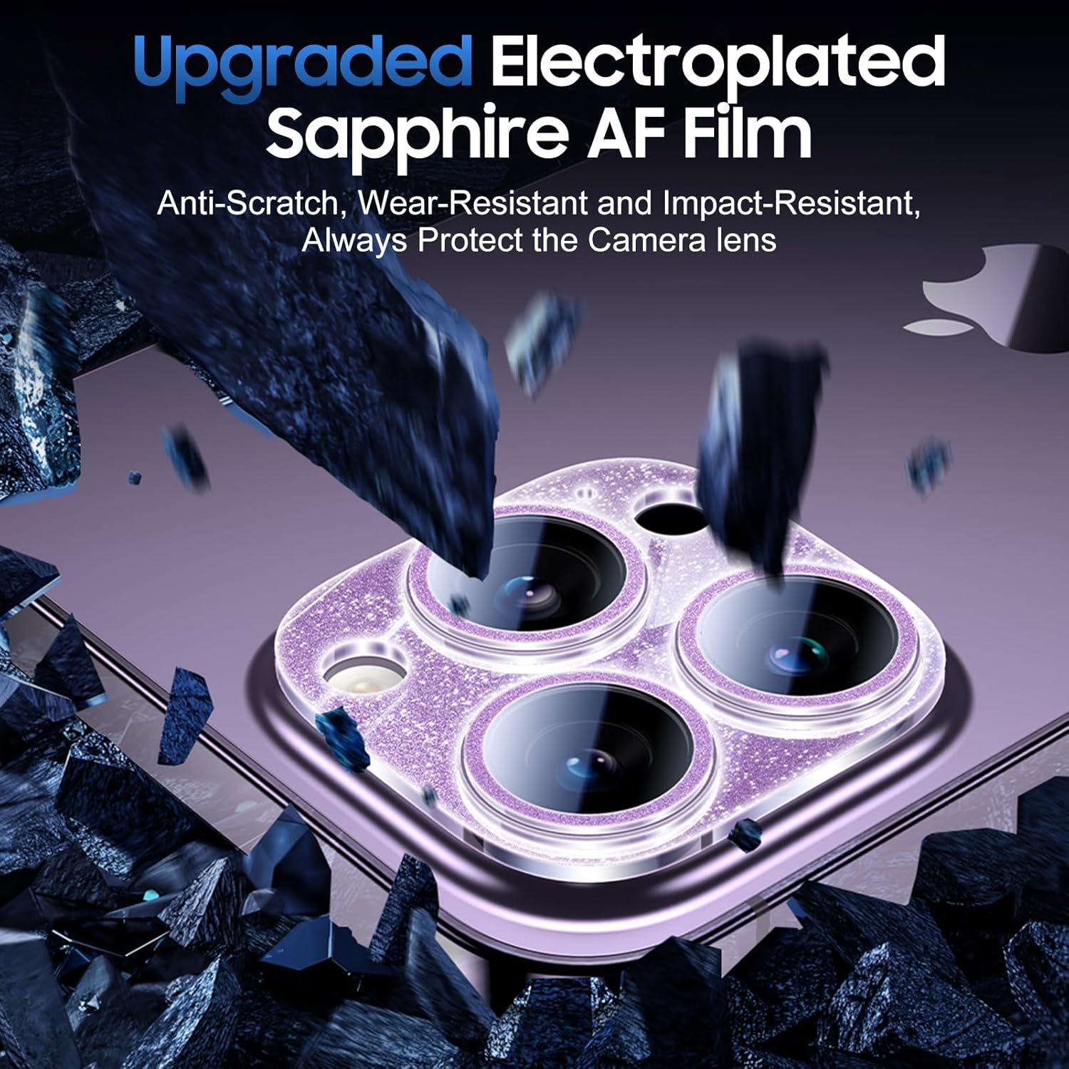 UniqueMe 3 Packs Compatible for iPhone 14 Pro Max/iPhone 14 Pro Camera Lens Protector Acrylic [Not Glass],[Case Friendly][Scratch-Resistant][Night Shooting Mode]-Glitter Purple