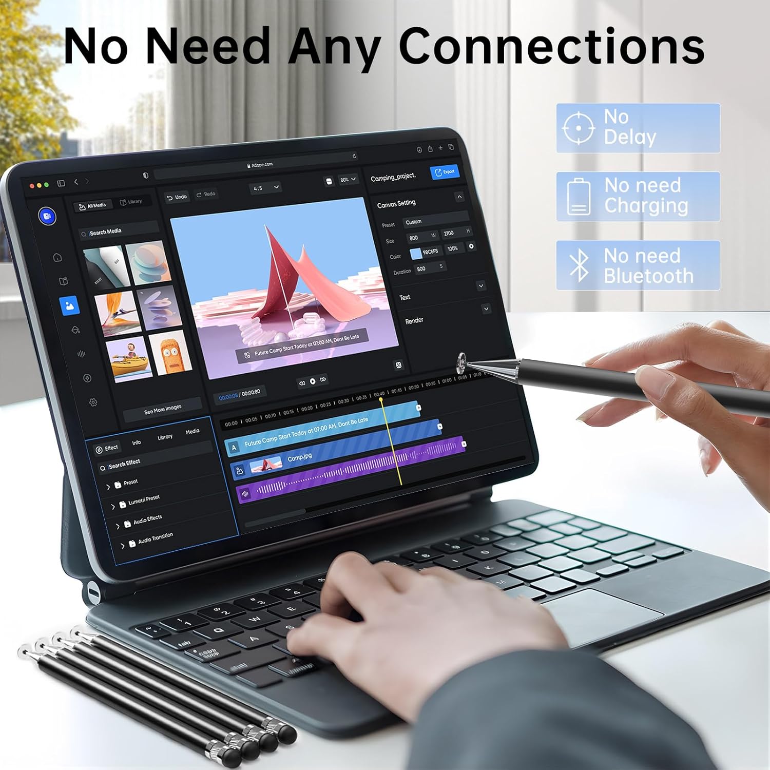 - 【2-in-1 Stylus Pen】Tablet pen for touch screen, made of lightweight alloy, no need for Bluetooth connection or charging, ready to use after opening the package, comfortable in hand, sturdy, durable and anti-aging, so you can use it anytime, anywhere Easily capture inspiration and make everything feel like writing on paper, giving you a more accurate writing/drawing/touching experience.