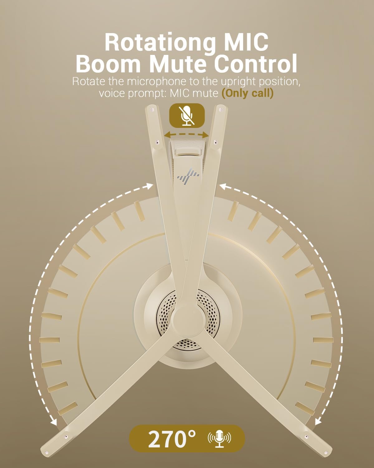 Wireless Headset with AI Noise Cancelling Microphone Bluetooth Headset - Bluetooth V5.2 Headphones with USB Dongle & Mic Mute for Computer/Laptop/PC/iPhone/Android/Cell Phones/Zoom-Apricot