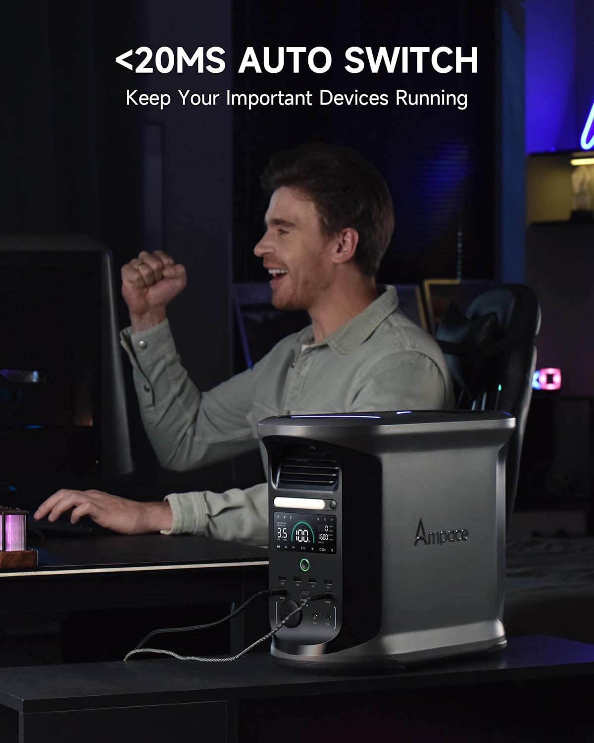- QUIET AND RELIABLE HOME BACKUP – The Ampace Andes 1500 solar generator combines user-friendly operation with robust engineering, ensuring effortless use. With a near-silent 30dB sleep mode and rapid 20ms EPS switchover, it's ideal for outdoor camping, off-grid living, home backup and emergencies.