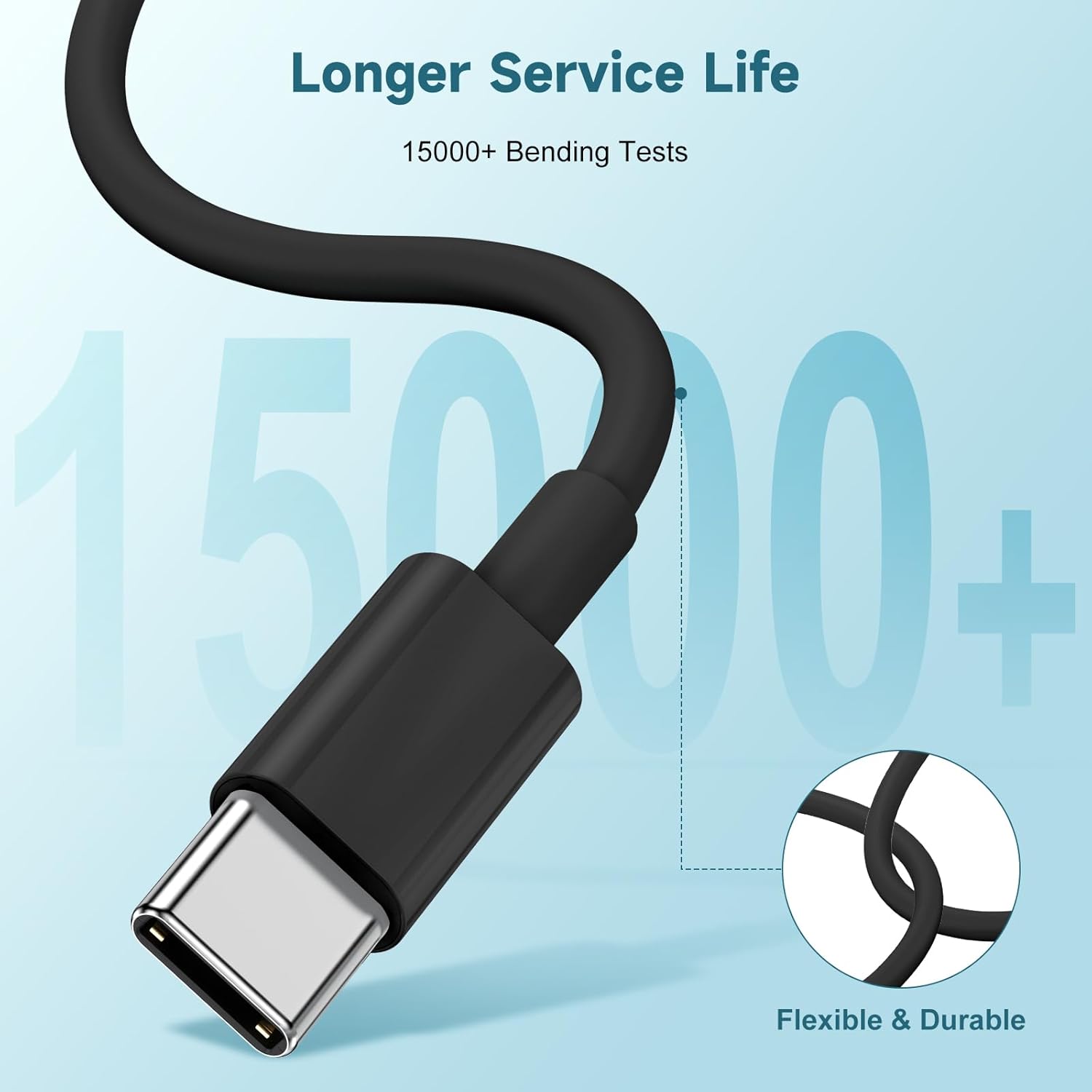 - 【A More Durable Charging Cable】Equipped with international safety standard certification, military-grade material made USB C to C cable more safe to avoid overheating, charred, and firing, adding durability and tangle free. Thanks to a 15,000-bend lifespan, this cable is more than ready to handle the stresses and strains of charging on the go.