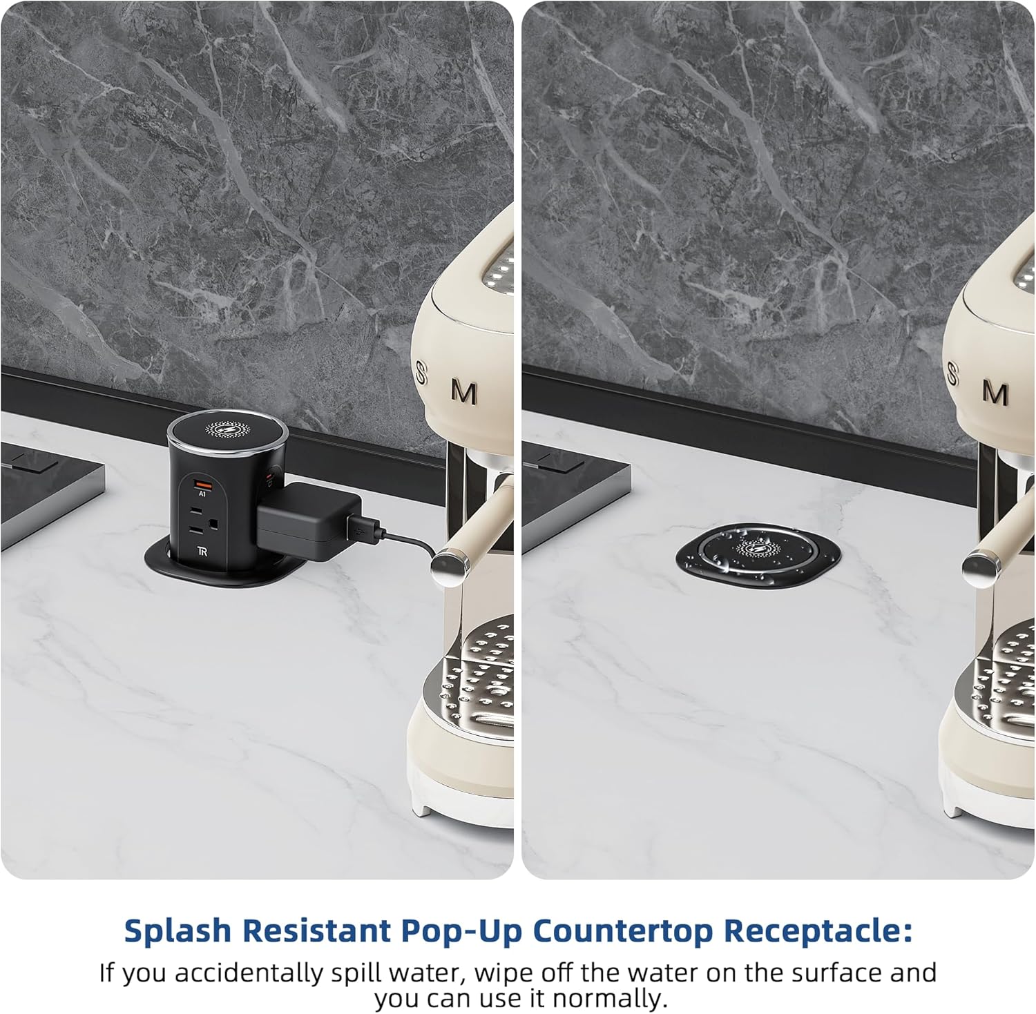 - Transform your kitchen counter or office desk instantly! Our pop-up countertop outlet , flush recessed design, blends seamlessly into any surface.
