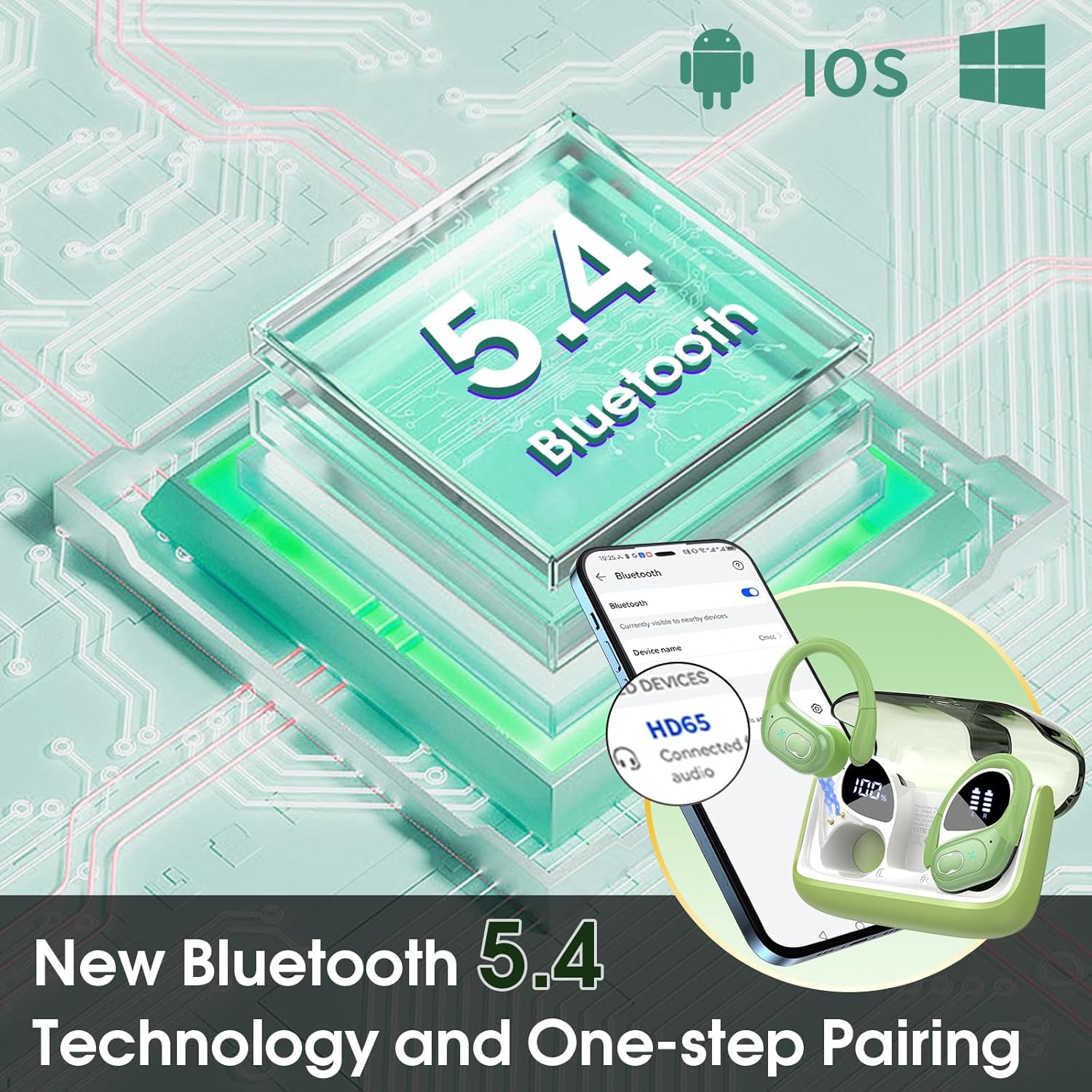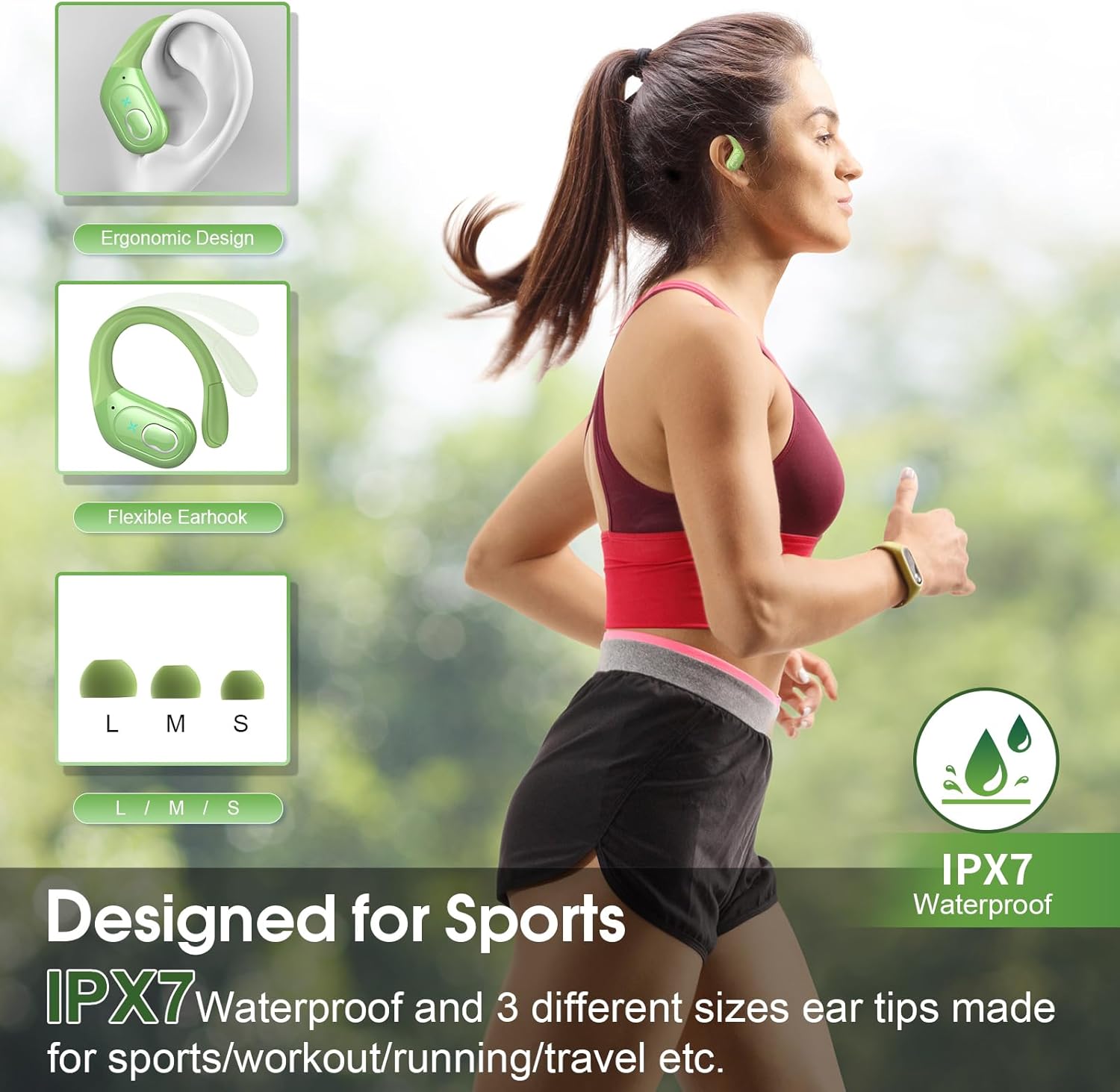 Wireless Earbuds 75hrs Bluetooth 5.4 Headphone Sport, 2025 Bluetooth Earbuds Stereo Deep Bass Over Ear Bud with Earhooks, ENC Noise Cancelling Mic, IPX7 Waterproof Earphone, Green