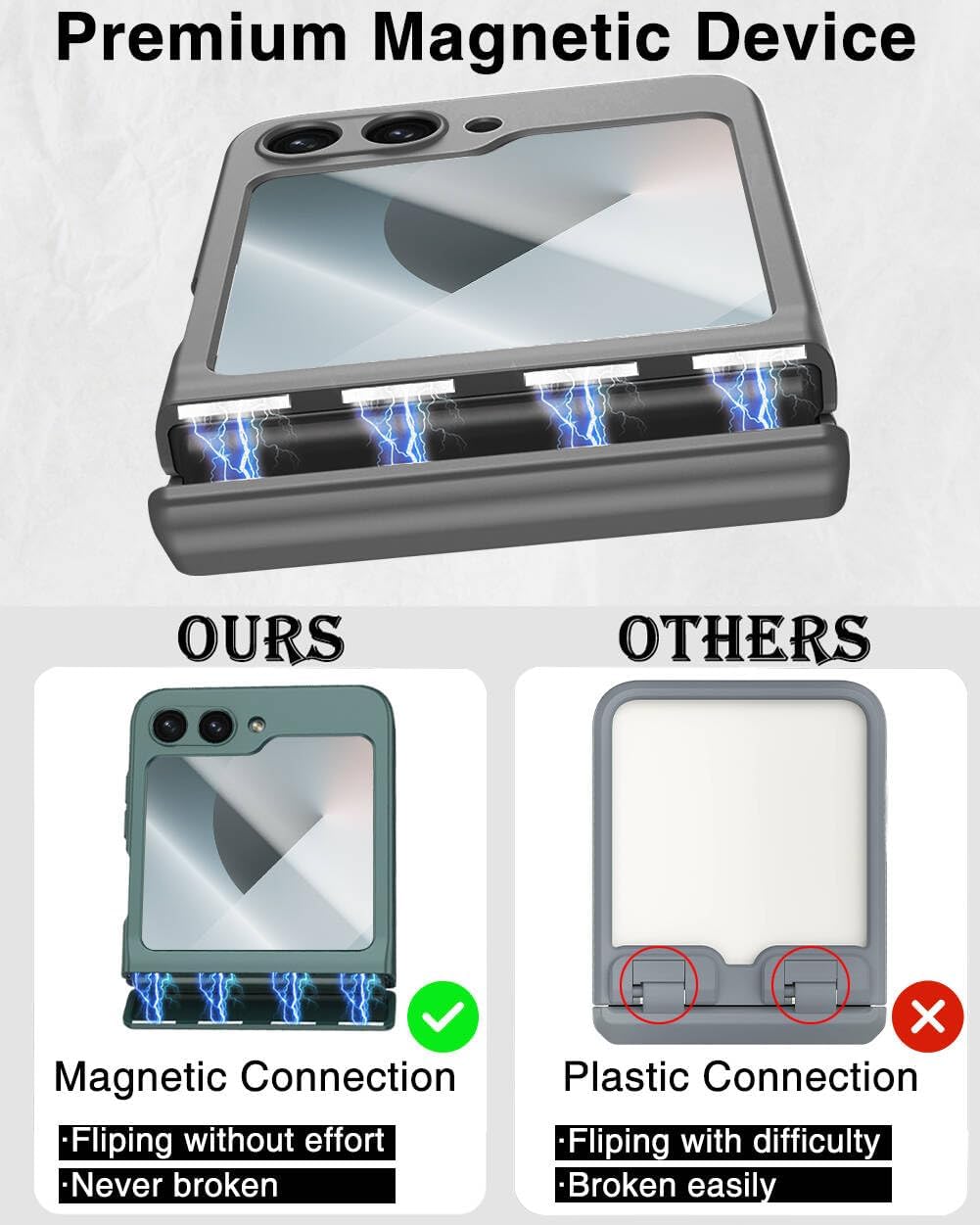 - [Advanced Hinge Protection]: Our Z Flip 6 Case, 7 FE case features an innovative hinge protection design specifically for the Galaxy Flip 6 Case, Flip 7 FE Case, providing complete protection from all angles. Our Z Flip 6 Case, Flip 7 FE case is designed with a unique magnetic connection that won't be broken by impacts such as drops. Besides, our Z Flip 6 Case, Z Flip 7 FE Case with unique design flips more smoothly without spring resistance.