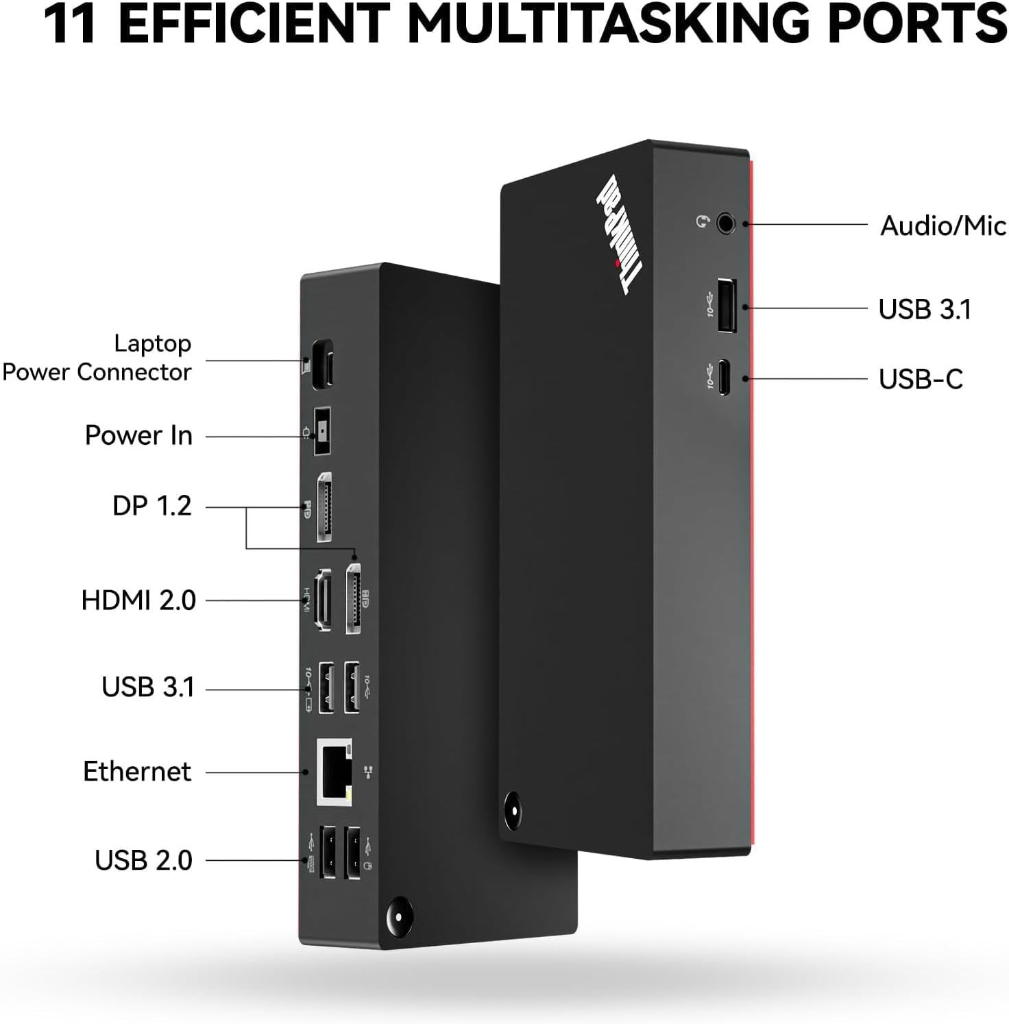 Thinkpad 40AY0090 Universal Hybrid USB-C with USB-A Docking Station for Lenovo Laptop, 3 External Displays, Comes with ITSPWR HDMI 4K Cable + DP Cable+ Cleaning Cloth