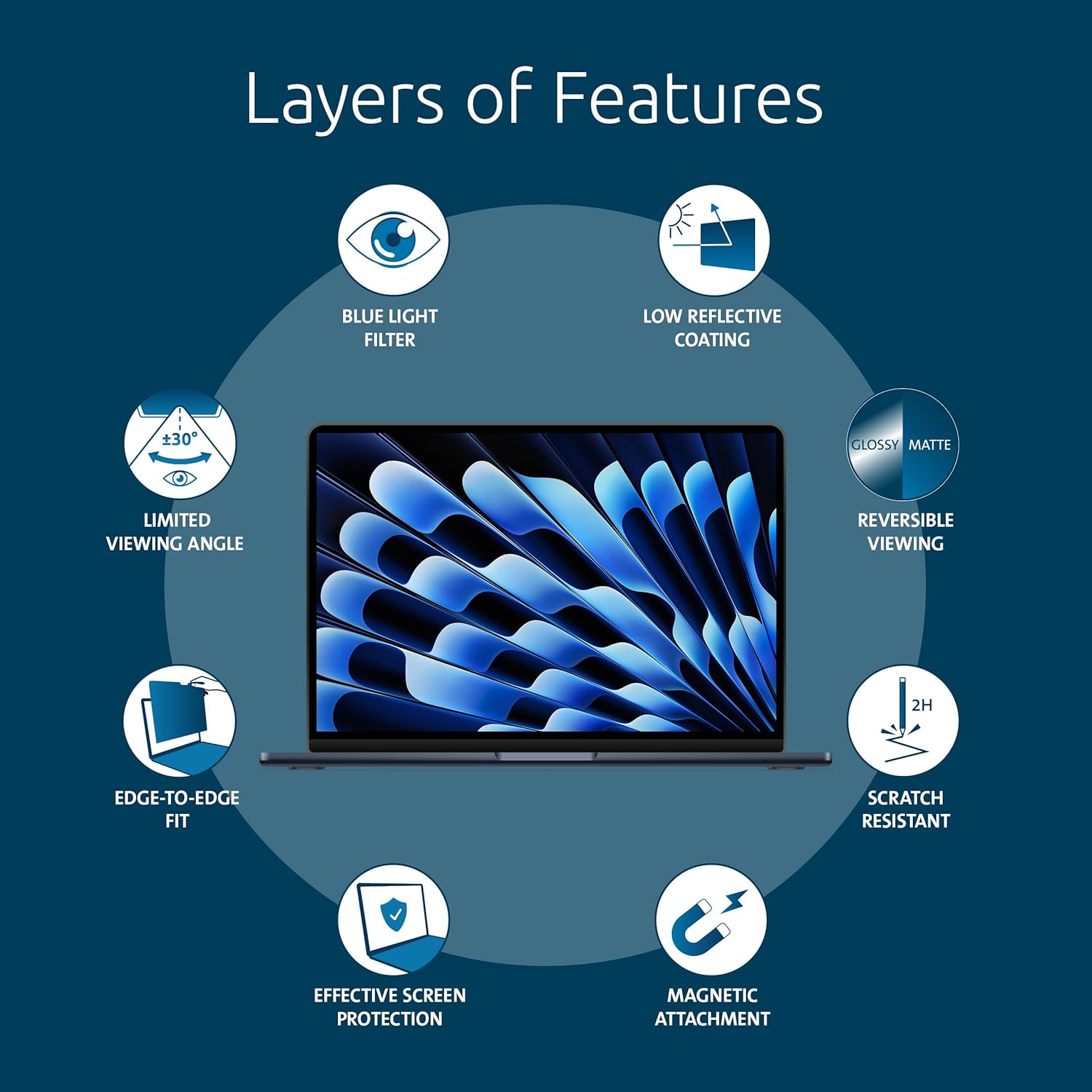 - MacBook privacy screen filter integrates seamlessly with 13.6" MacBook Air (2022 and later); attaches to magnets that are already built in to the MacBook's frame