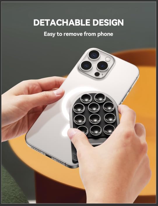 - 【Deachable Desigh】Just put the suction cup mount on a clean and smooth surface and press it, then place the phone on it. Easy to remove from the adsorbed surface with a silicone wrench. Friendly for wireless charging, as well as people with manicures and long nails
