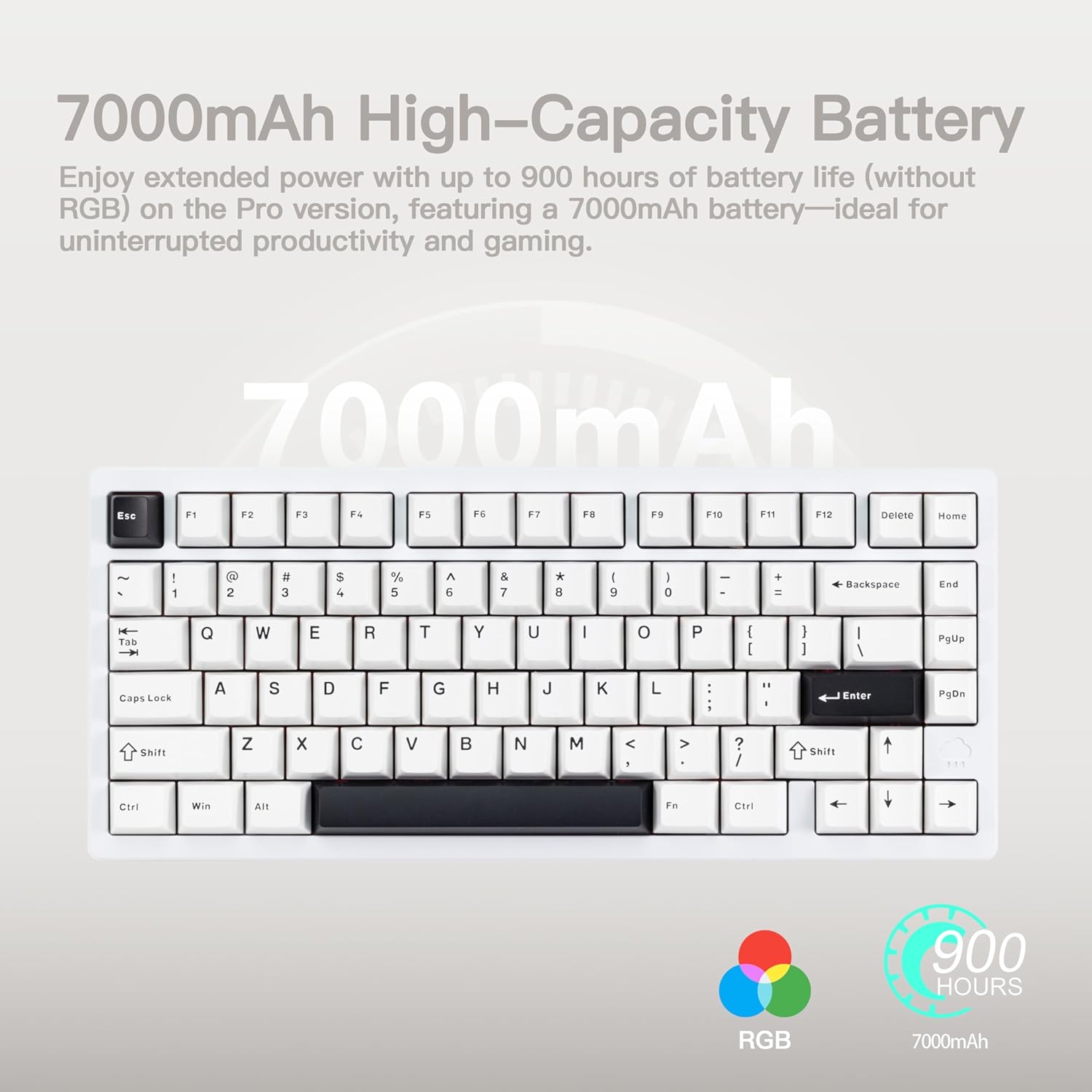 KEEBMONKEY WOBKEY Rainy 75 CNC Aluminum HMX/JWK/Cocoa Switches Triple-Mode Connectivity Mechanical Keyboard with Superior Acoustics, RGB/FR4/Silver SUS304/7000mAh/Cocoa Switch (Pro - Luna)