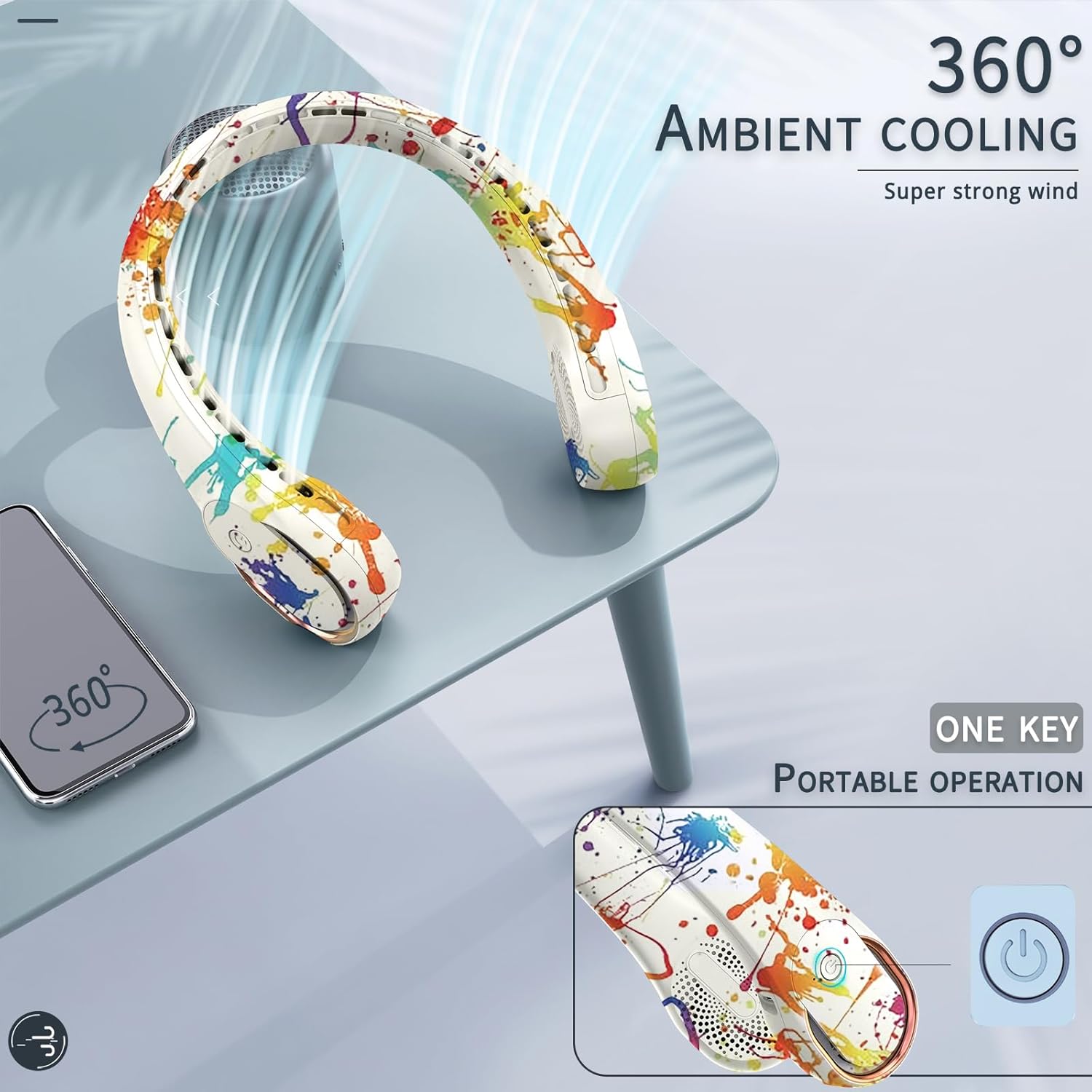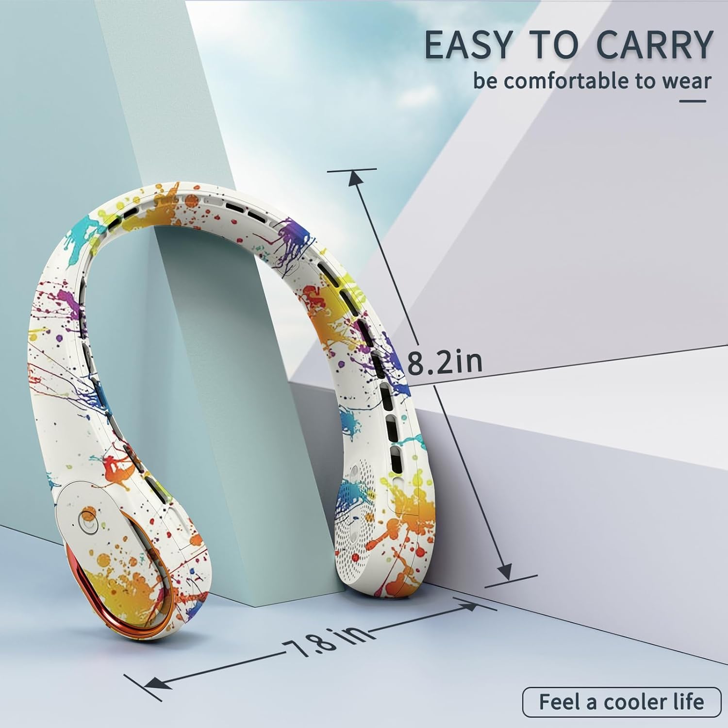 - [Safe Design & Cooling Upgrade] Upgraded Bladeless neck fan, which will not pinch hair or cut your fingers, ensuring safe use for long hair people, children and the elderly. Upgraded air outlet design, 360° surrounding air outlet, and a new generation of turbine blades are quickly cooled in 3 seconds. Let you feel more gentle cool breeze.