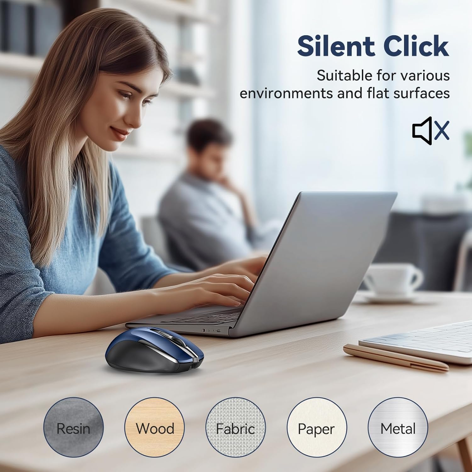 Bluetooth Mouse (BT5.0/3.0 & 2.4G) Rechargeable Wireless Mouse, 4800 DPI Optical Tracking, 6 Adjustable DPI, 2.4GHz with USB A Receiver, Quiet Clicks, Ergonomic Grips, 6 Buttons - Blue