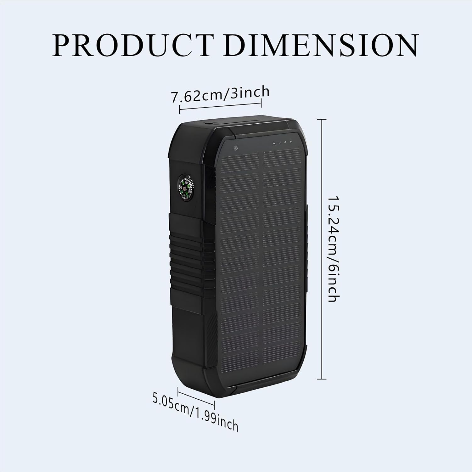 - 【Practical outdoor battery pack】Equipped with two bright LED flashlights, it has three modes to switch between (SOS/ flash/stable), suitable for power outages or other emergencies. The built-in compass clearly shows the direction. This solar-powered portable power bank is made of high-strength professional ABS material, which is resistant to chemical corrosion, high temperature, has excellent surface hardness, high elasticity and toughness, and has good waterproof/shockproof/dustproof performance