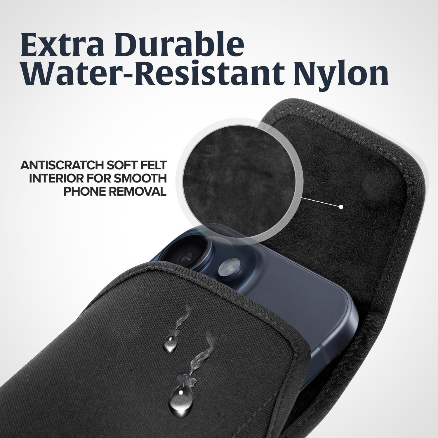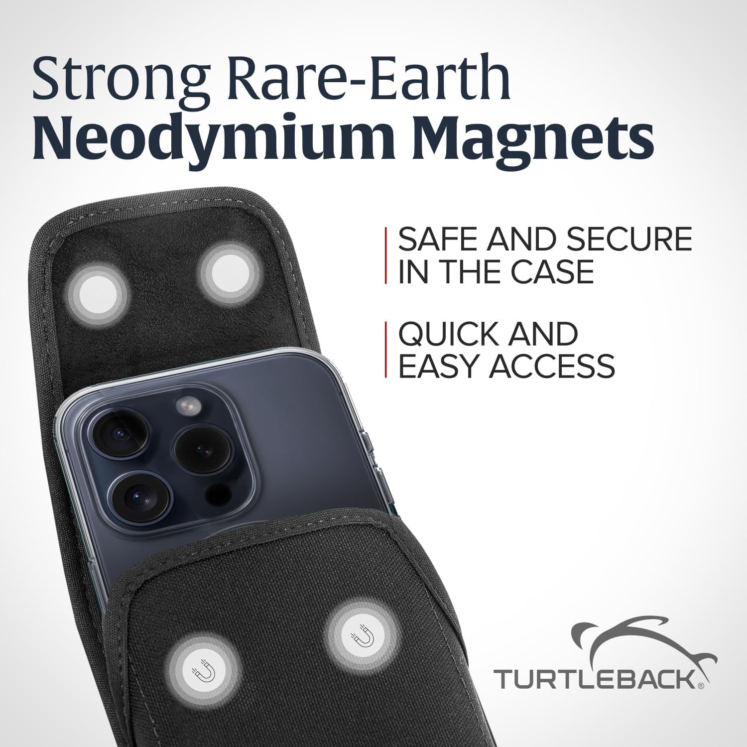 Turtleback Belt Clip for iPhone 16 Pro Max, 15 Pro Max, 14 Pro Max -Small- Fits w/Slim MagSafe Style Cases, Premium Black Nylon, Vertical Belt Holder, Magnetic Closure, HD Rotating Belt Clip