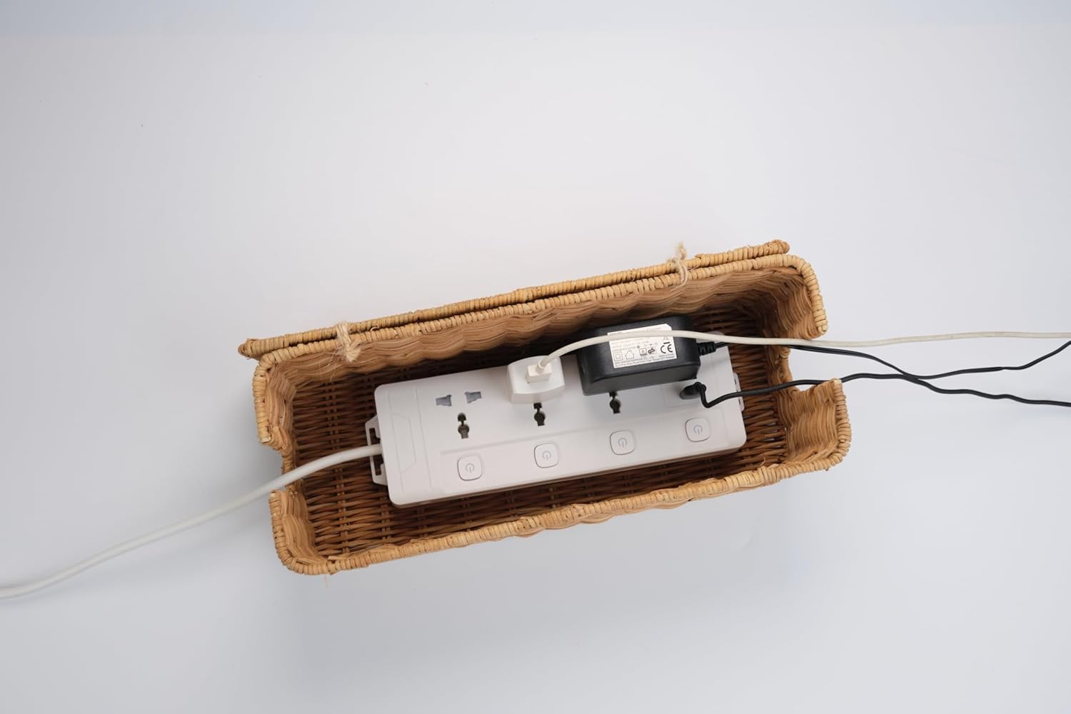 - NATURAL RATTAN: This wicker cable organizer is made of durable, eco-friendly natural rattan grown in Vietnam, and hand woven by Vietnamese artisans. Dimension 13"L x 5.12"W x 5.7"H (33 x 13 x 14.5 cm)