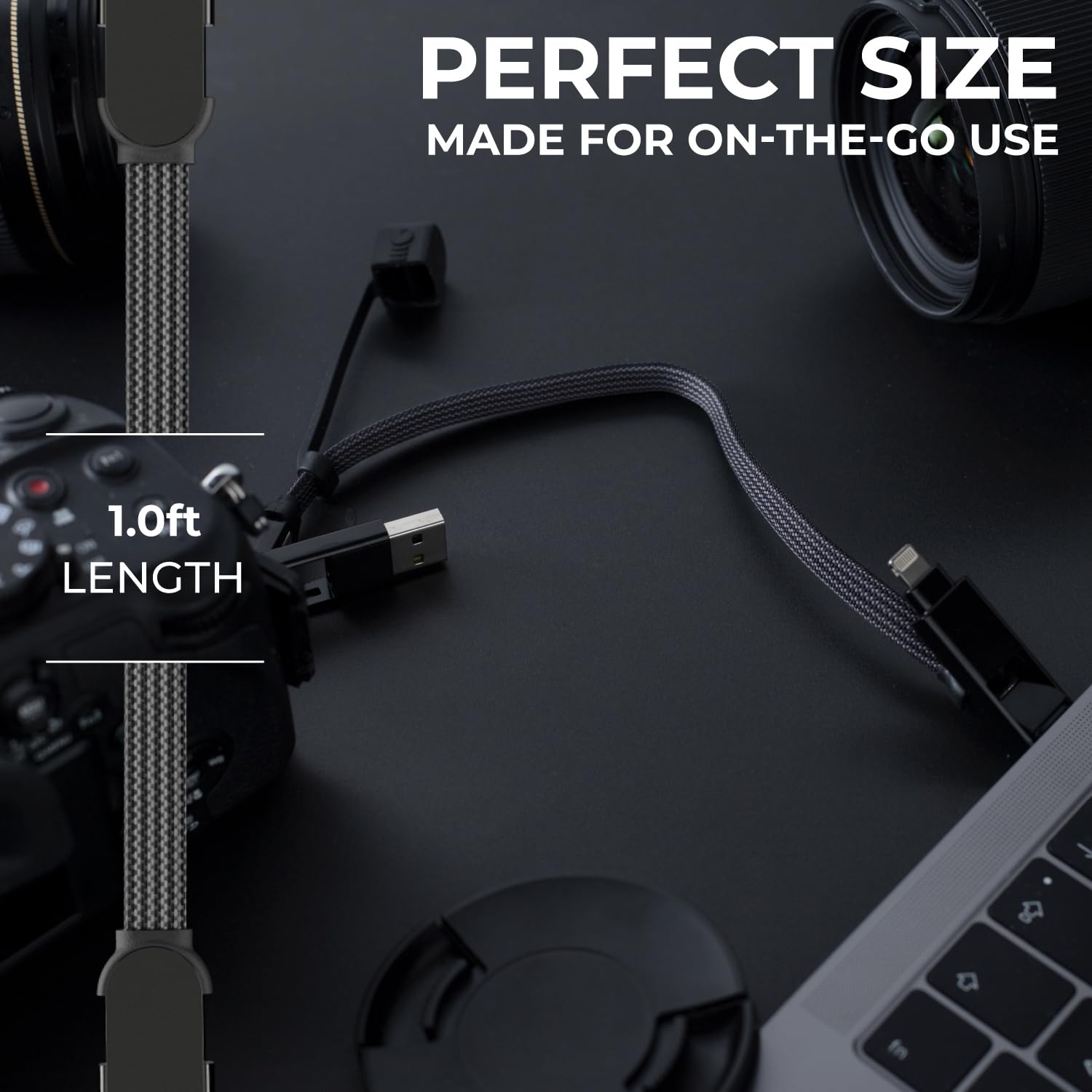 Rolling Square inCharge XL 6-in-1 Multi Charging Cable, (3X Pack) Portable USB and USB-C Cable 100W Ultra-Fast Charging, 1 Ft/0.3m, Black