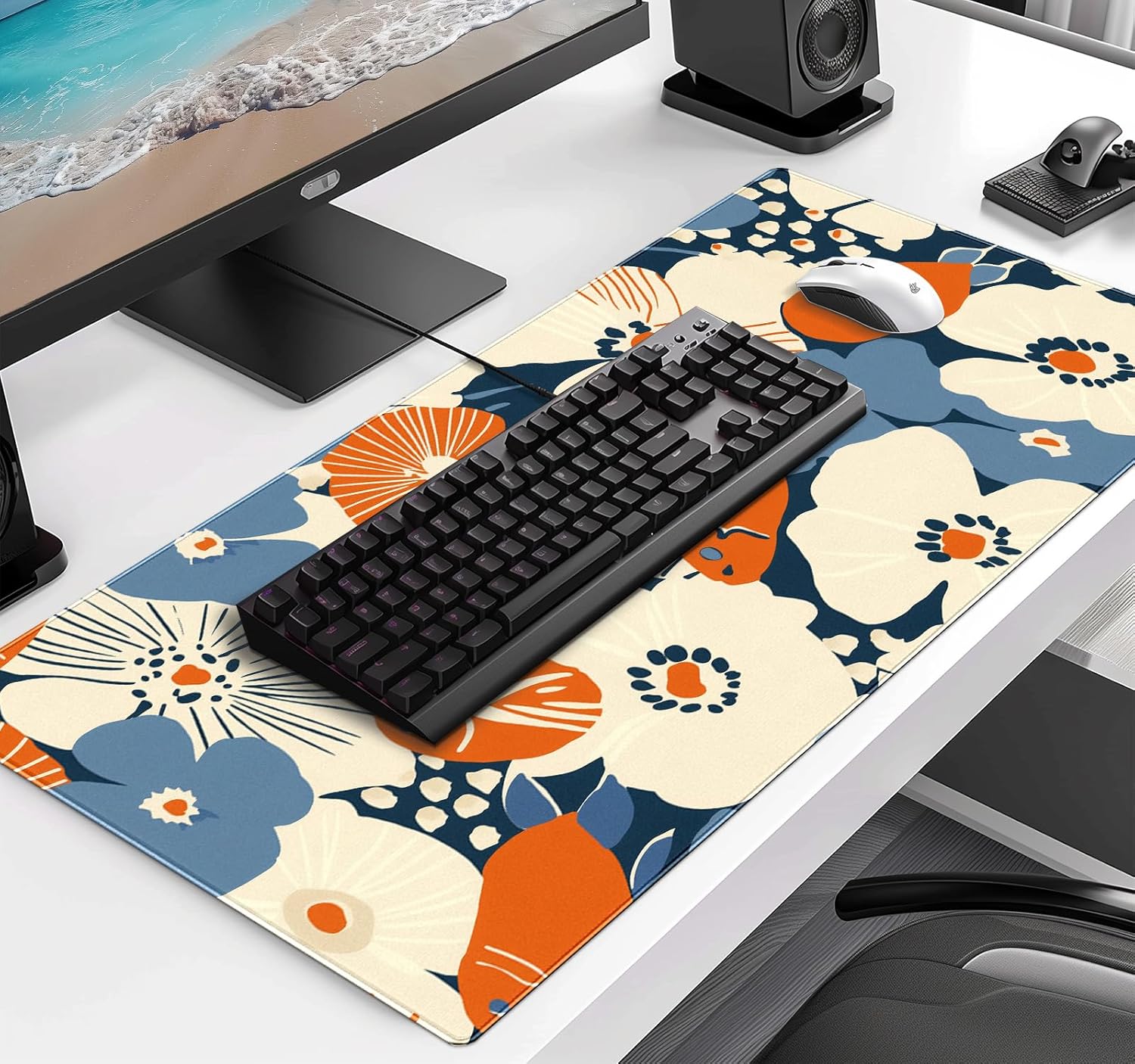 Cute Anime Flower Mouse Pad, Women's Office Desk Accessory Decoration, Expanded Mouse Pad 35.4 x 15.7 x 0.12 Inch Sewn Edge Non Slip Rubber Base