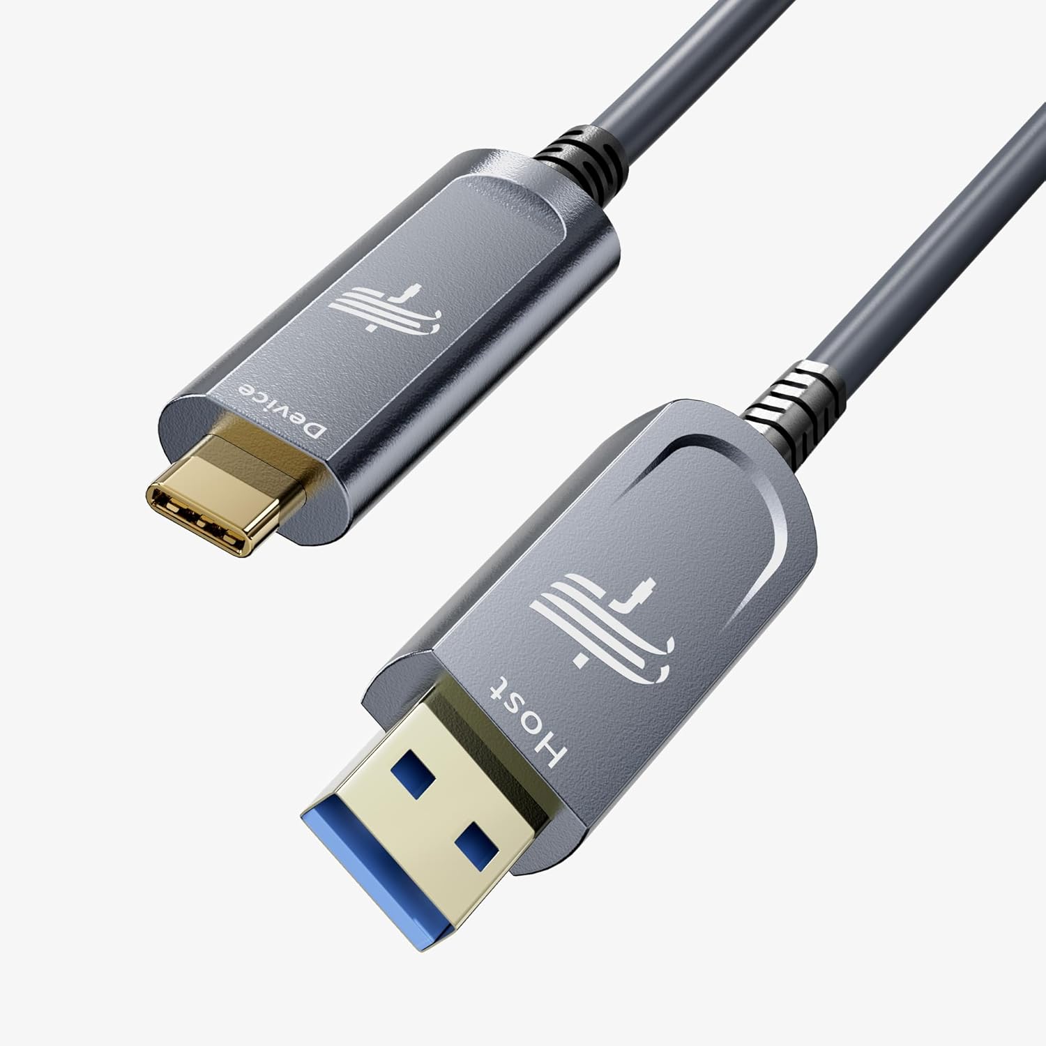 Fiber Optic USB A to USB C Cable(50ft),High Speed 10Gbps USB 3.2 Gen2 Active Optical Cable for VR, Webcam, Laptop,Camera,Projector etc,Grey