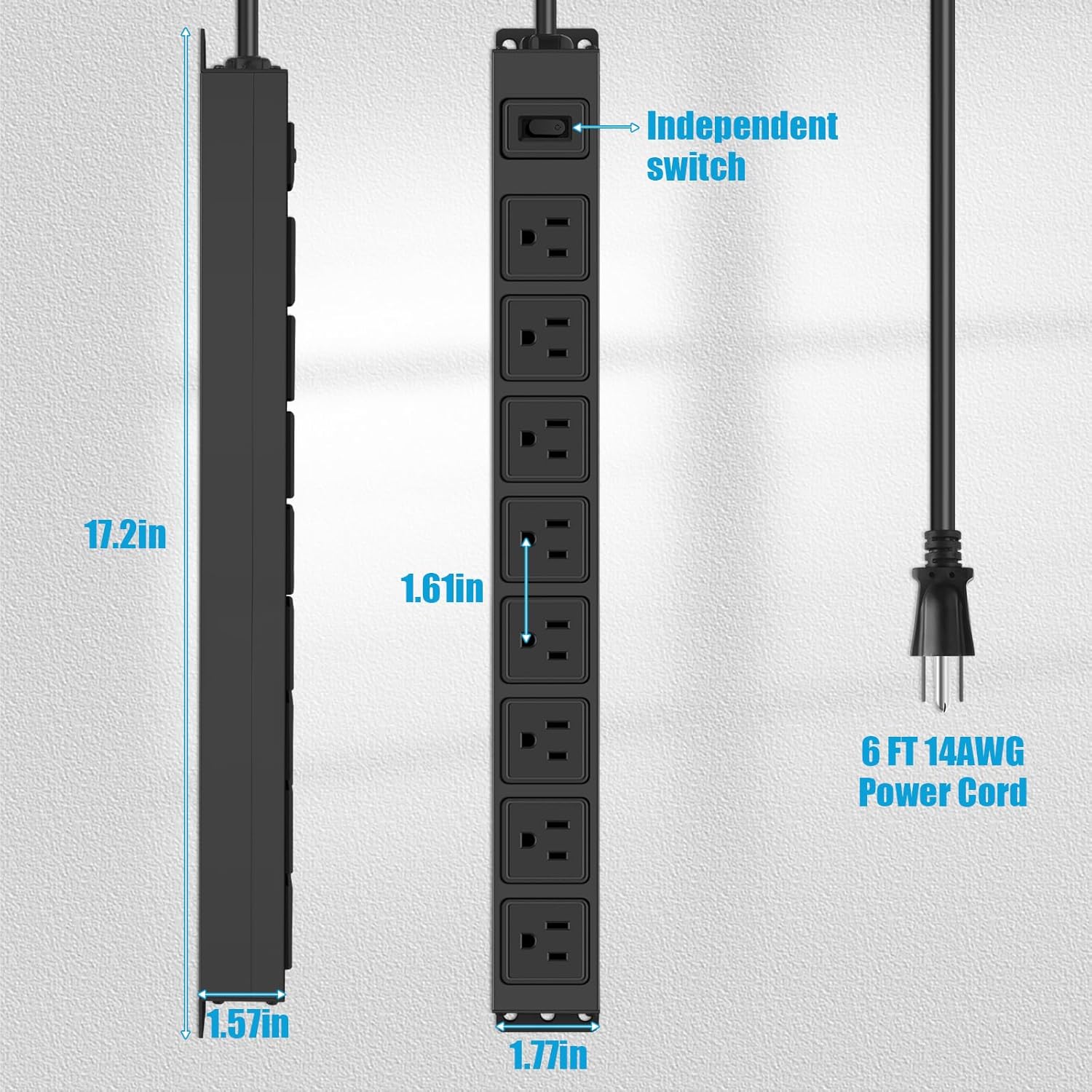 HHSOET Magnetic Mount Power Strip, 8 Outlet Mountable Socket, Metal Heavy Duty Surge Protector, Gaming Table Outlet, Easy to Fix Without Drilling or Taping, 6FT Extension Cord.(Black)