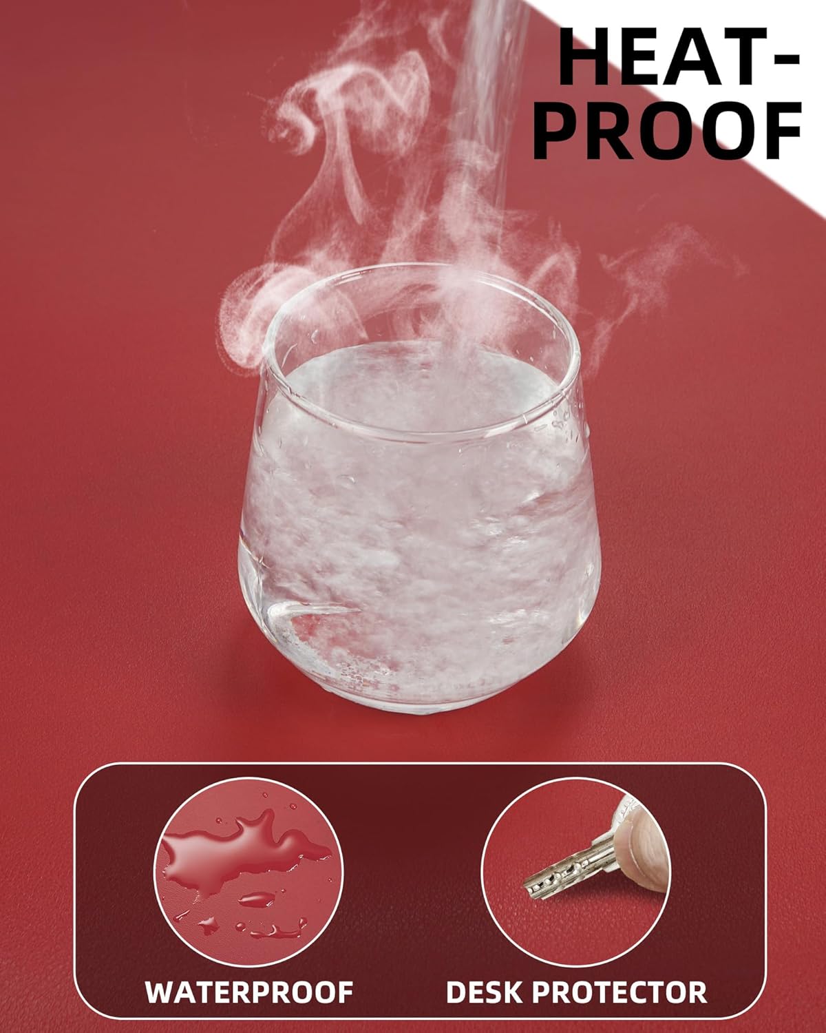 PU Leather Desk Pad Protector - 36"x17" Large Non-Slip Desk Mat, Waterproof Office Desk Blotter for Keyboard & Mouse, Premium Workstation Cover for Home & Office (Red)