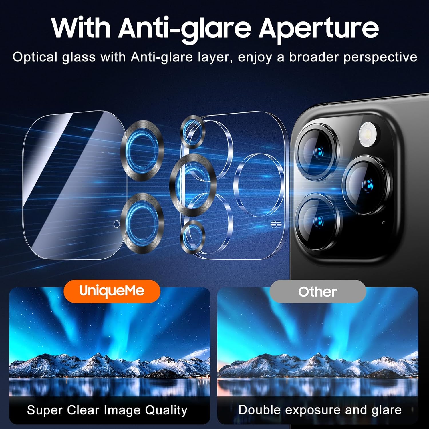 - 【4th Gen Upgraded Protection Design】UniqueMe iPhone 16 / 16 Plus Camera Lens Protector has been designed to provide durable and effective protection for the camera lens. It has been upgraded to its 4th-Generation integrated version with Anti-glare Aperture and an Electroplated Sapphire Super Hard AF film camera protector screen.