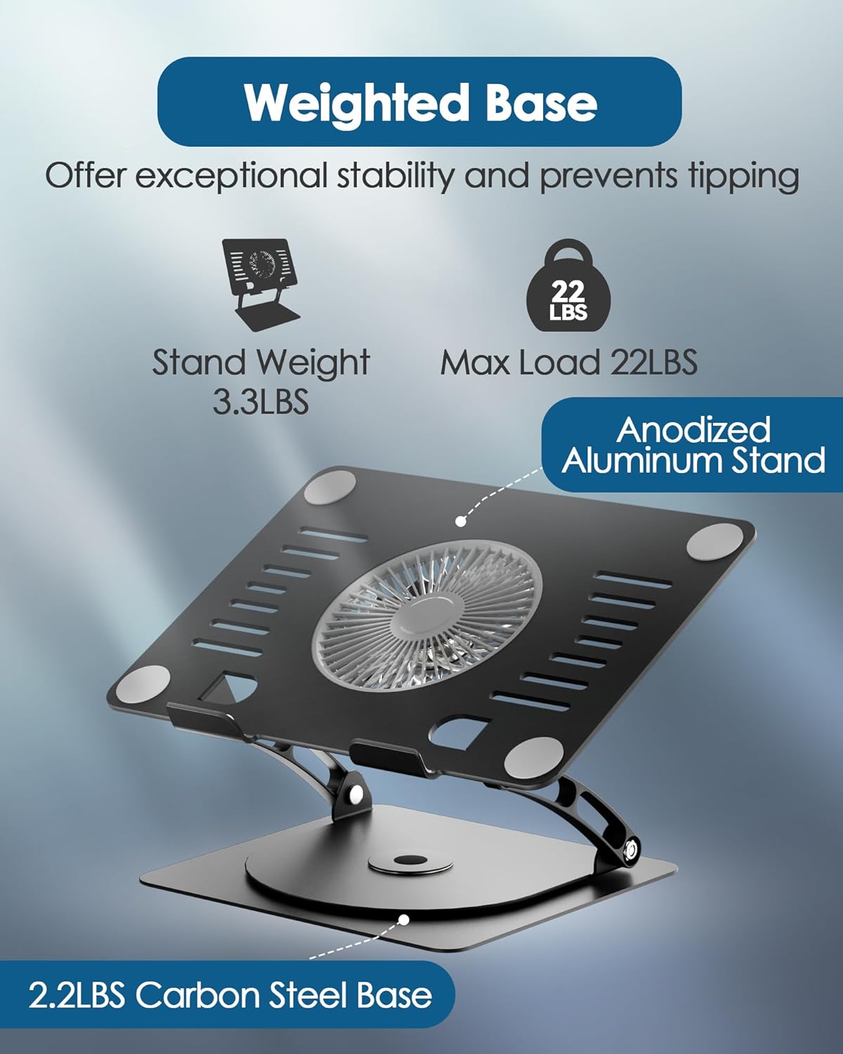 SHUWEI Gaming Laptop Cooling Pad with 360° Rotation Base, Ergonimic Aluminum Laptop Cooling Stand with 3 Speed Fan, Adjustable Height Laptop Cooling Pad for 10-17.3'' Notebook