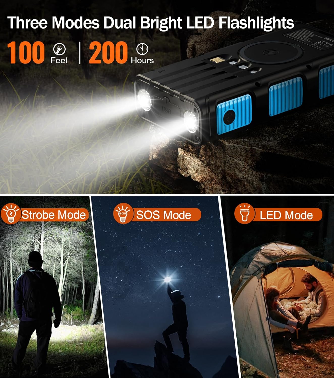 GOODaaa Power Bank Wireless Charger 45800mAh Built in Hand Crank and 4 Cables 15W Fast Charging Power Bank 7 Outputs & 4 Inputs Solar Portable Charger, SOS/Strobe/Strong Flashlights, Compass