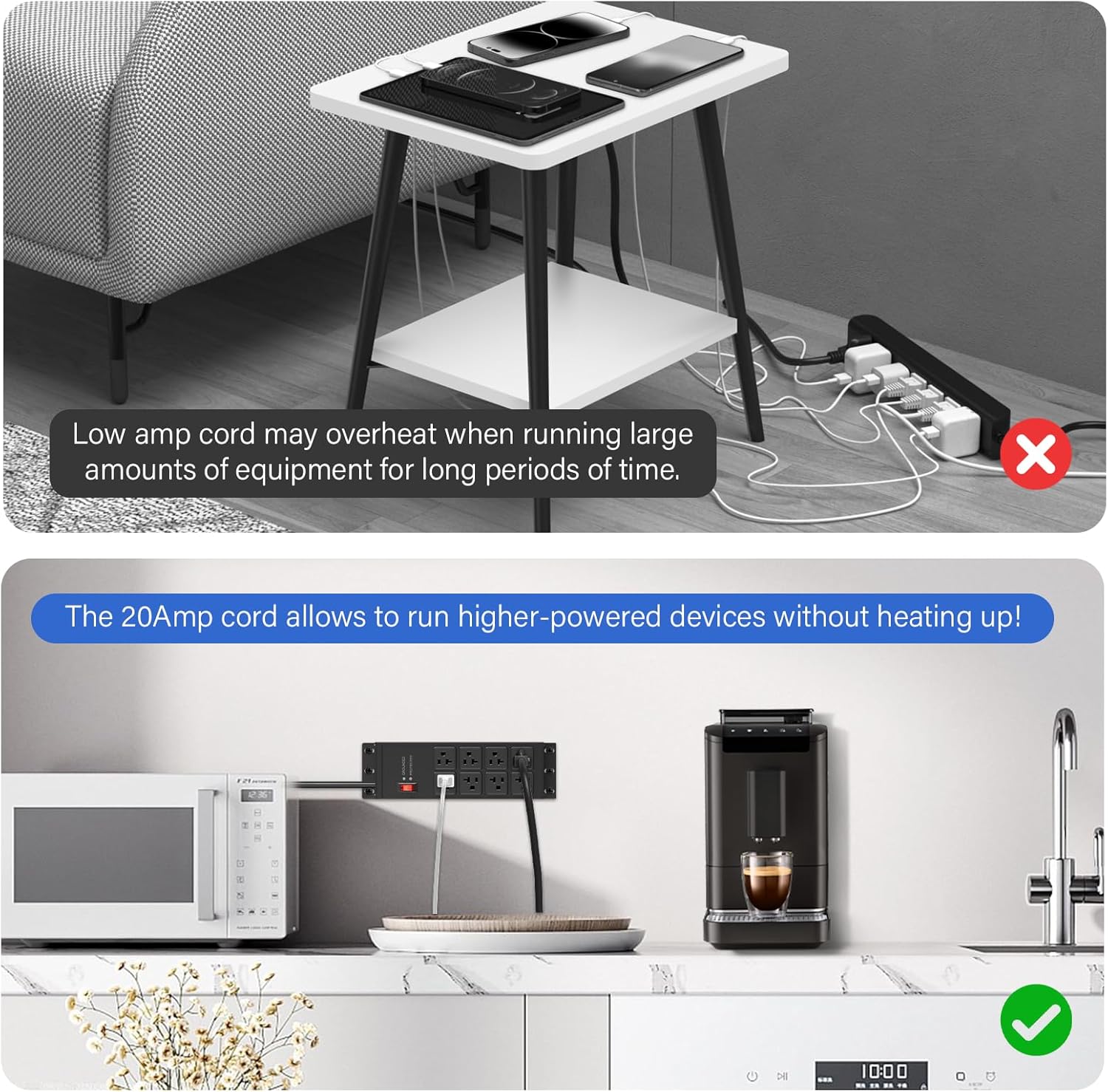 CCCEI Black Heavy Duty Power Strip Surge Protector 20 AMP, 8 Outlets 12 Gauge Industrial Shop Garage Metal Multiple Outlets, 15 FT Extension Cord 5-15P Adapter High Amp 6-20R T-Slot 20a for Appliance