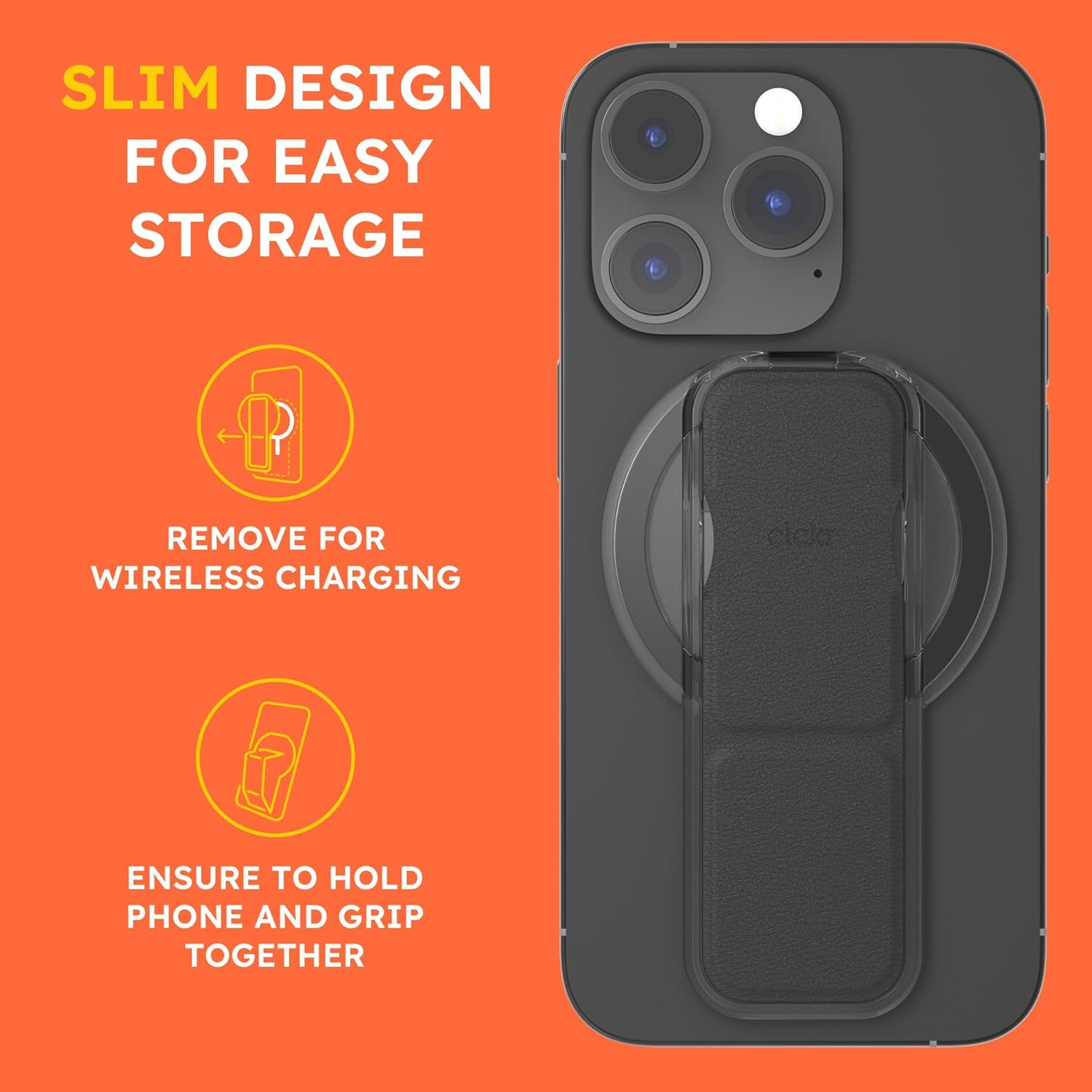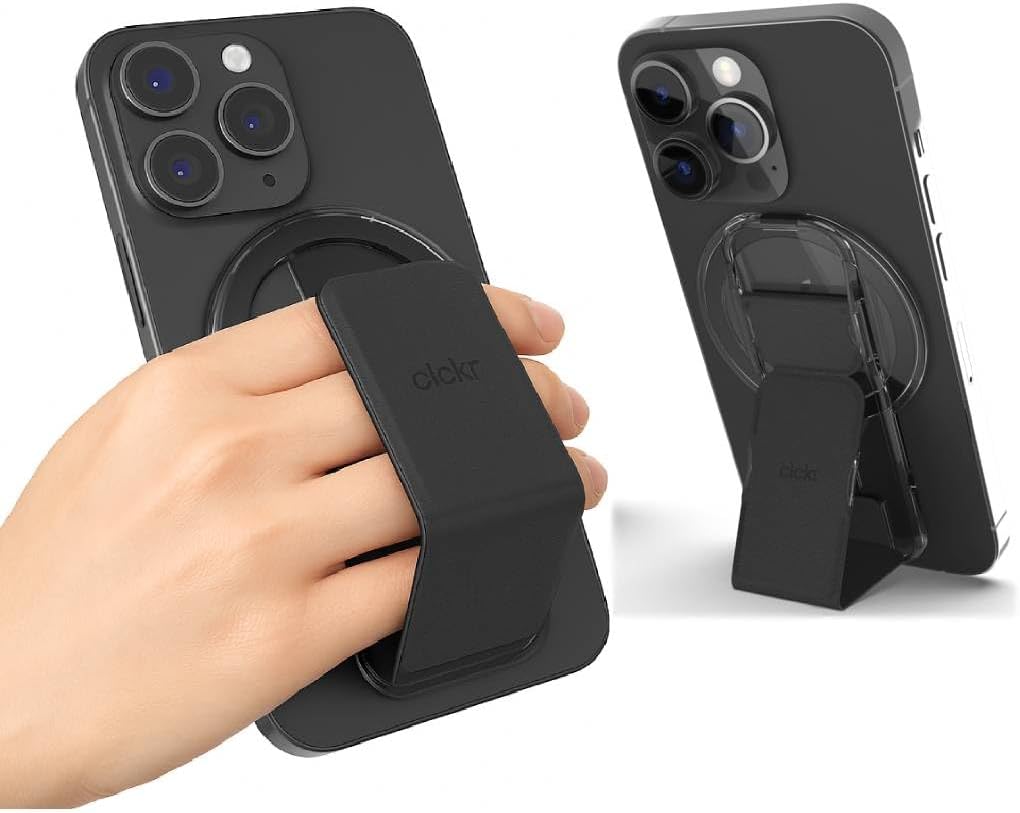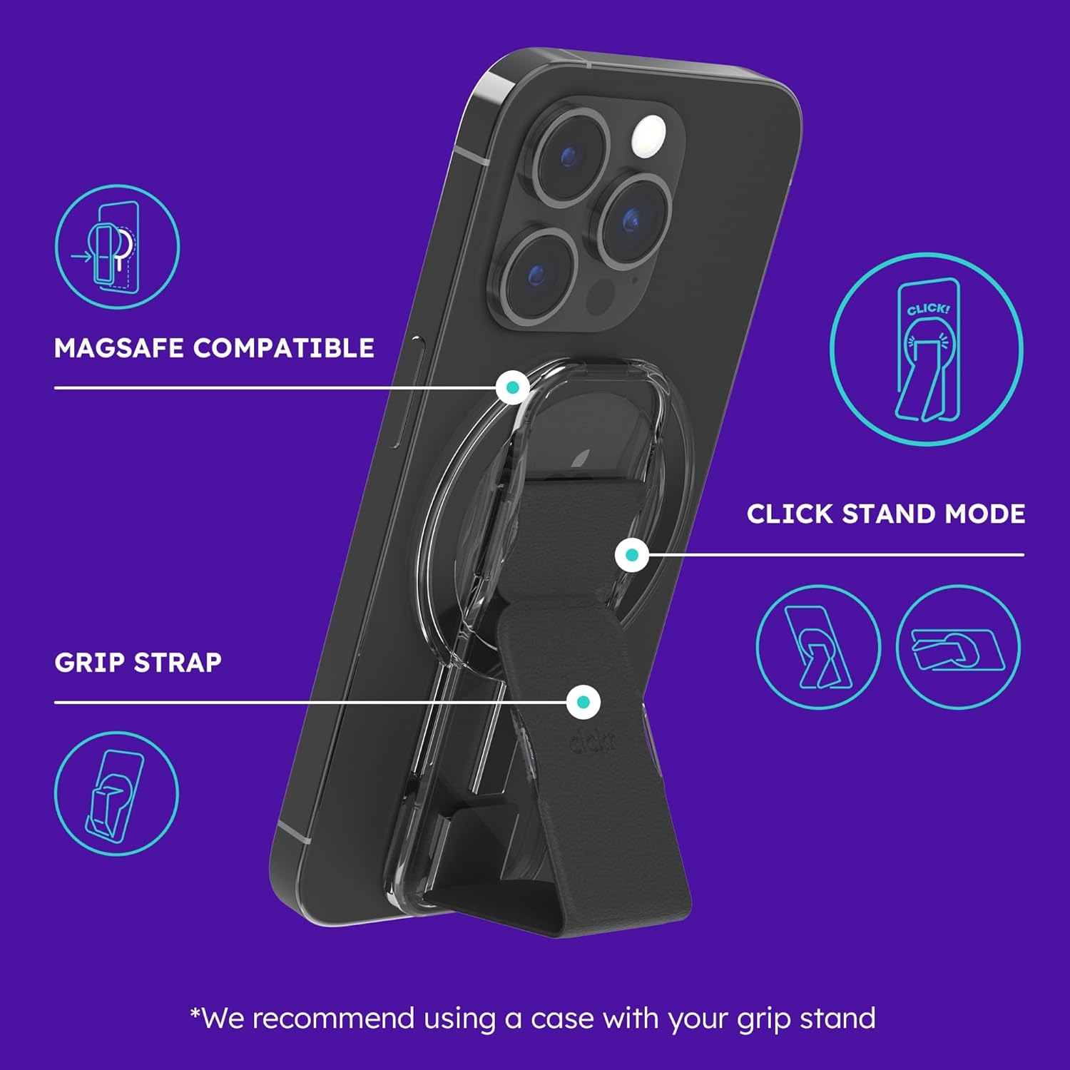 CLCKR for MagSafe Phone Grip for MagSafe Kickstand Compatible with Mag Safe Finger Loop, 3-in1 Phone Ring Holder Strap for Mag Safe iPhone 16/15/14/13/12 Series, Galaxy S25/S24/S23/S22, Pixel - Black
